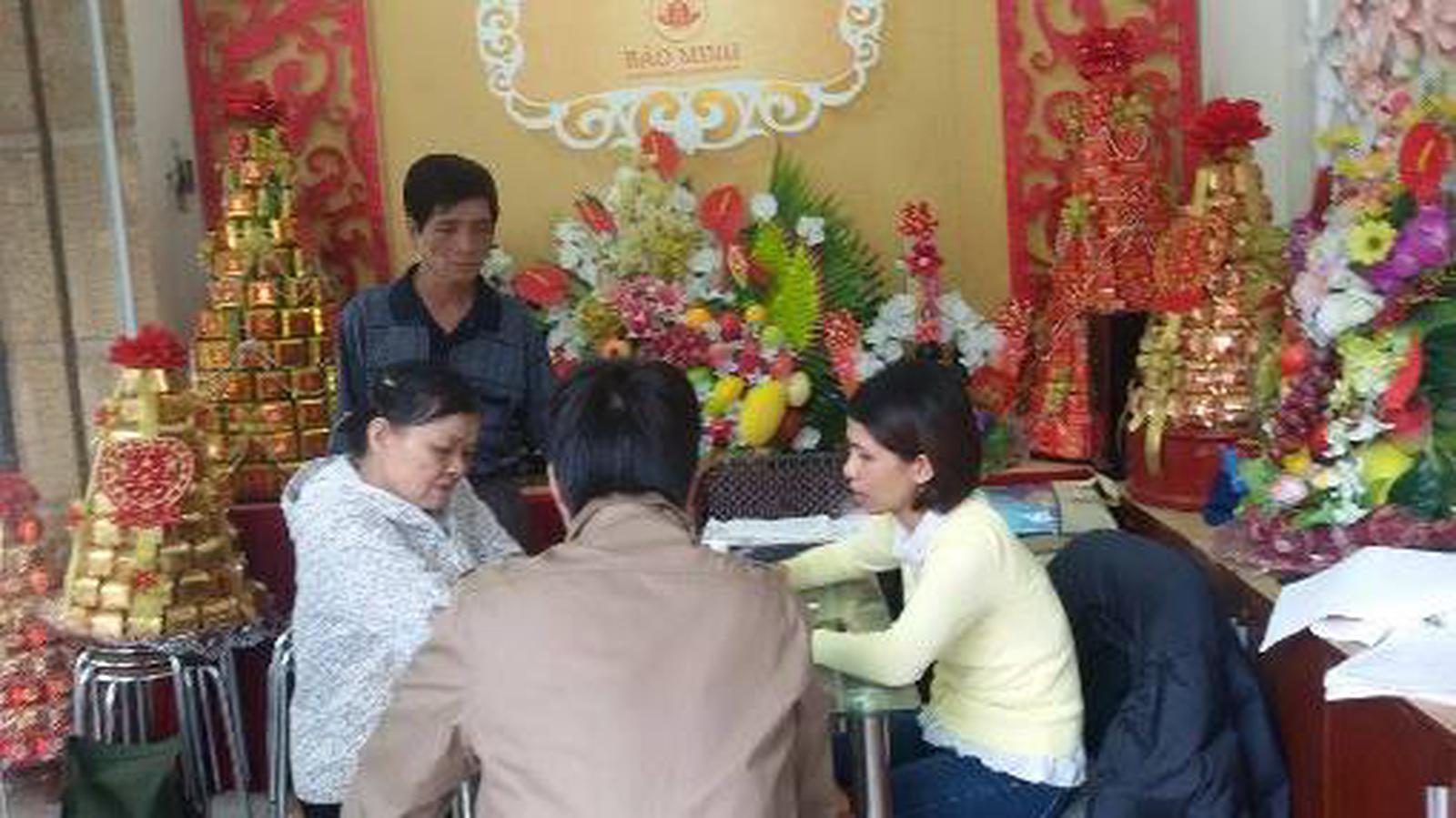 Khách hàng được tư vấn chọn lễ ăn hỏi tại một cửa hàng trên phố Hàng Than, Hà Nội. Ảnh: H.O