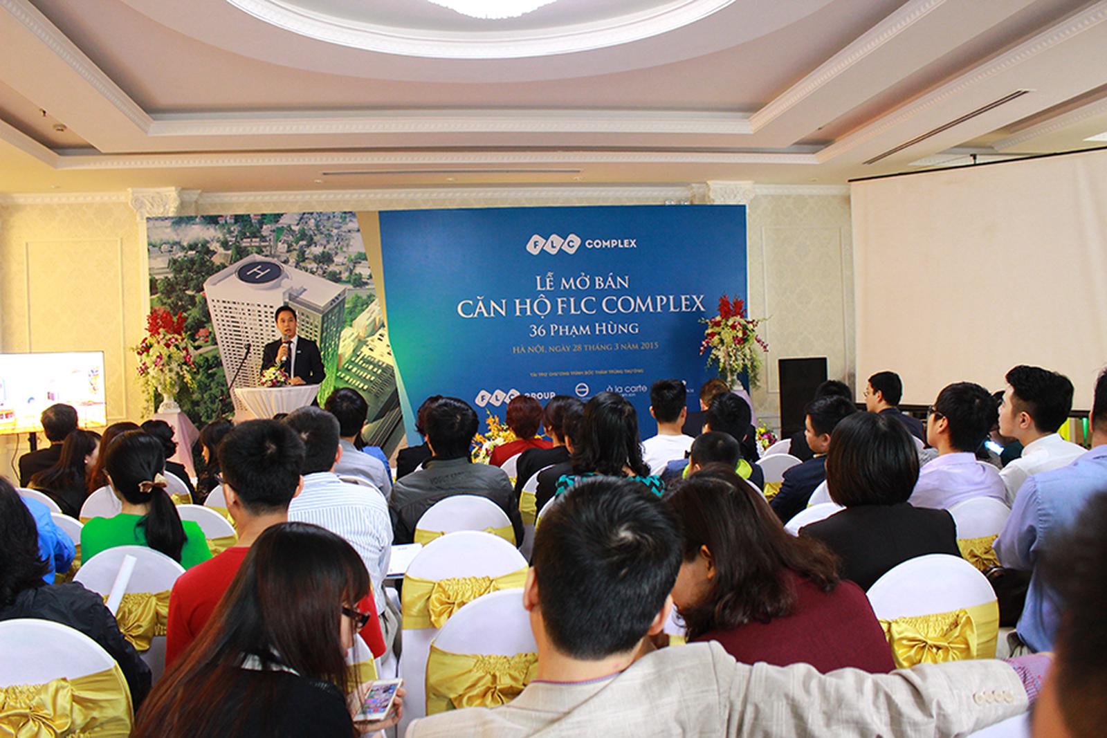 Dự án căn hộ FLC Complex (36 Phạm Hùng, Hà Nội) vừa được chính thưc mở bán, lễ mở bán diễn ra tại Sàn Giao dịch Bất động sản FLC, Tòa nhà FLC Landmark, đường Lê Đức Thọ, quận Nam Từ Liêm, Hà Nội, thu hút hàng trăm khách tham dự.