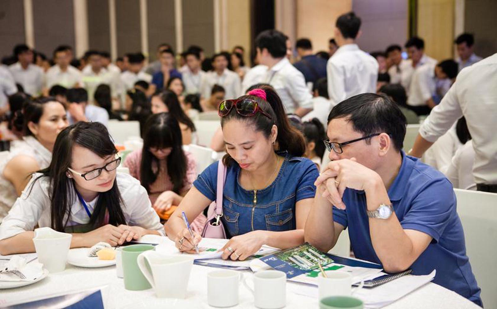 Khách hàng chăm chú tìm hiểu thông tin về dự án.