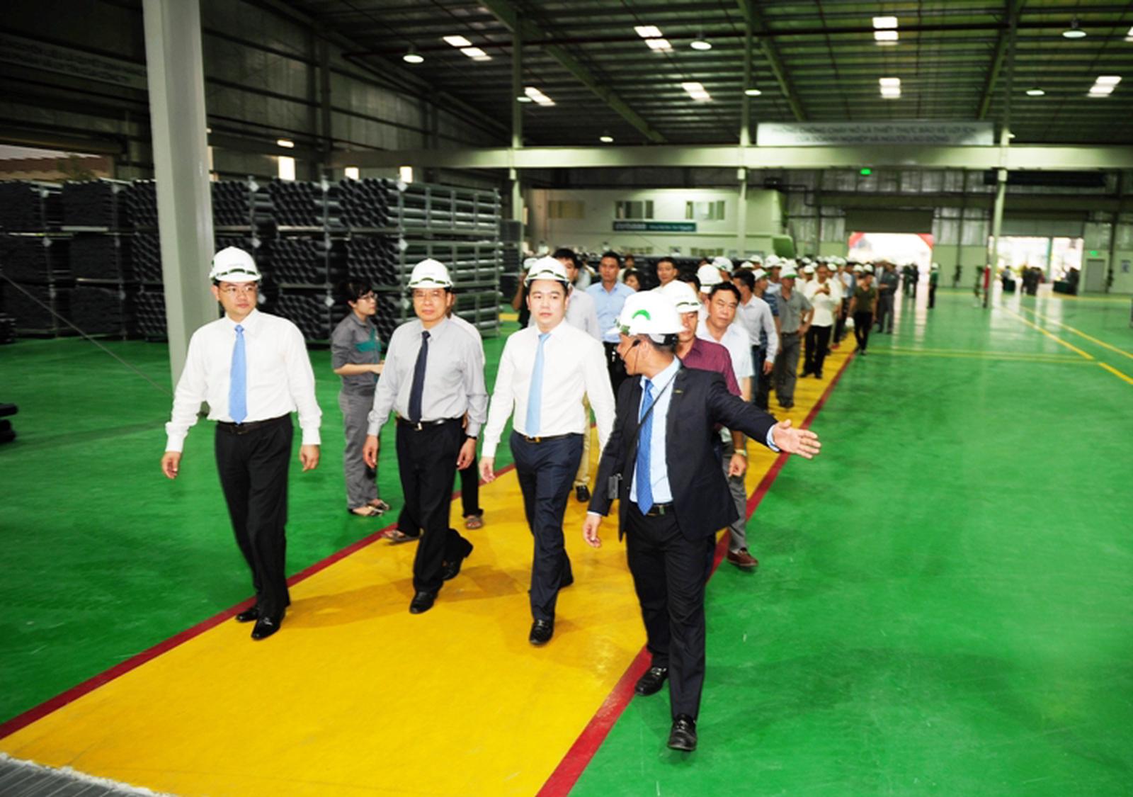 Ông Chu Văn Yêm - Phó Chủ nhiệm Văn phòng Chủ tịch nước dẫn đầu đoàn đại biểu đi tham quan Nhà máy Ống nhựa Stroman Hưng Yên