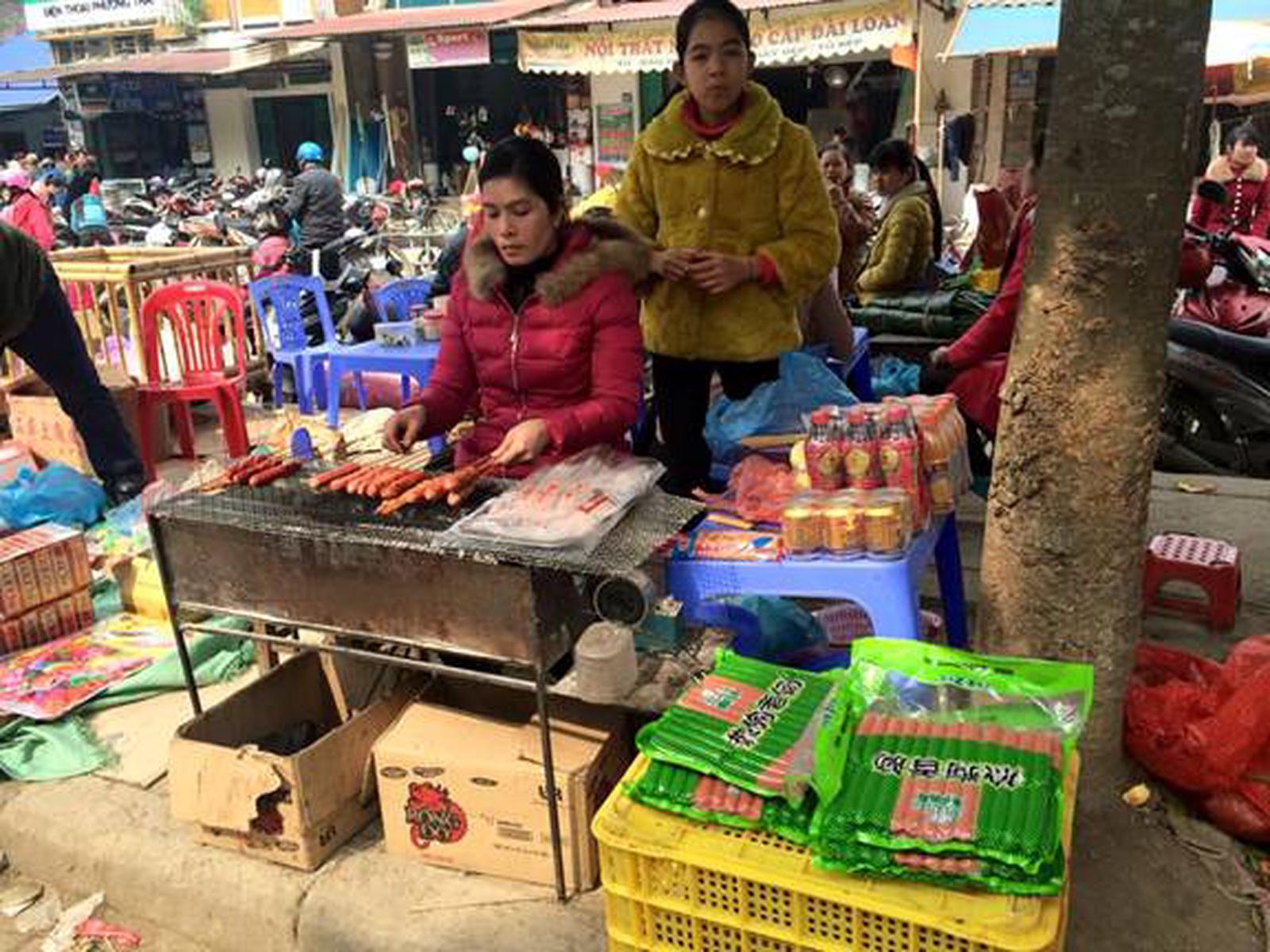 Theo chị Lã Văn Vọng, dân tộc Nùng, 38 tuổi cho biết: “Mỗi chiếc xúc xích có giá 5 nghìn đồng và nhập vào khoảng 2 nghìn đồng một chiếc, tôi không rõ nguồn gốc xuất xứ mà chỉ do đầu mối mang đến giao lại, thấy dân ăn nhiều nên bán thôi”.