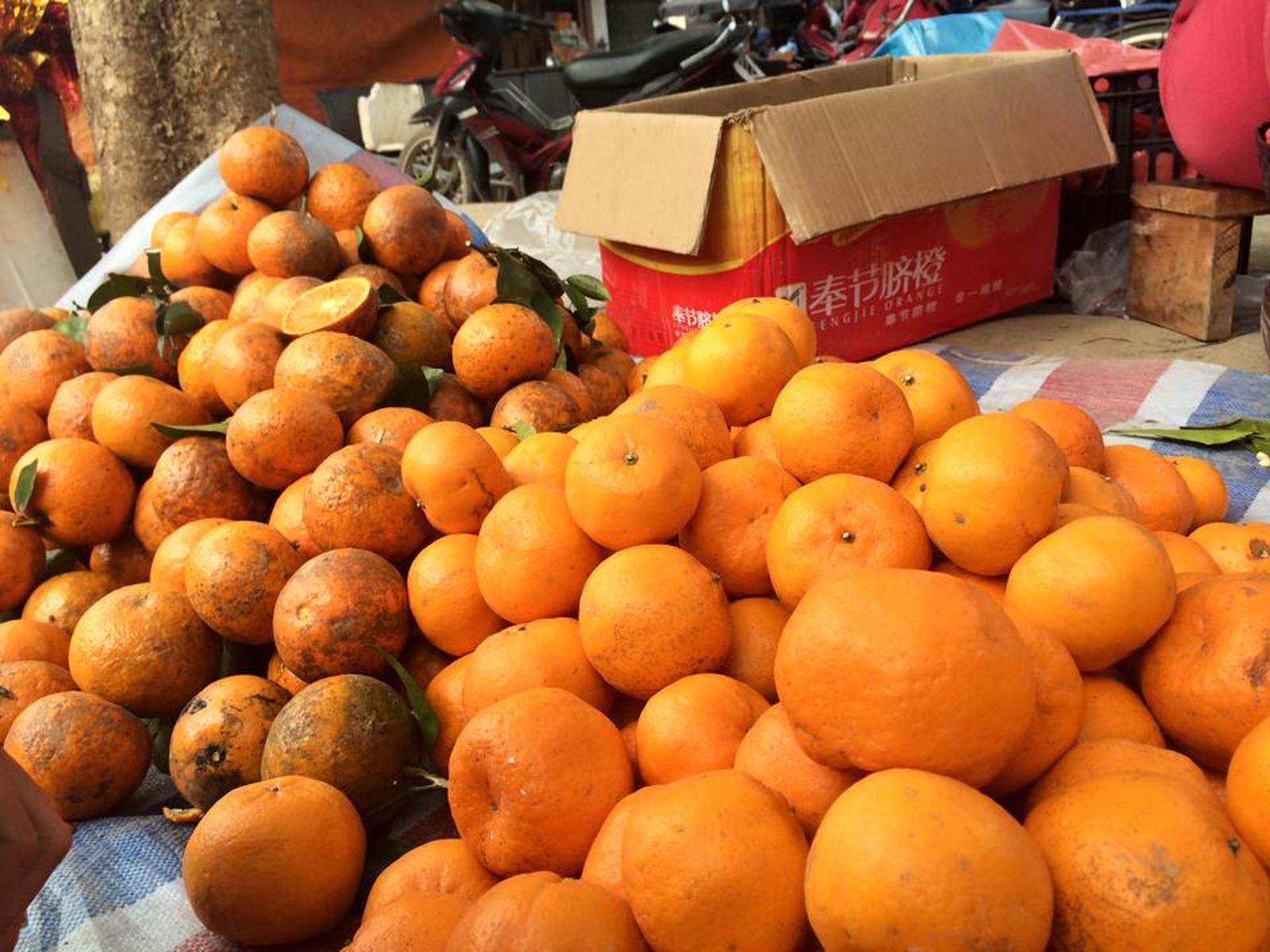 Đây là bức ảnh có sự so sánh rõ rệt về cam Trung Quốc và cam Việt Nam. Cô Trần Oanh cho biết: “Cam Trung Quốc ngọt, to và mẫu mã đẹp hơn cam Việt Nam rất nhiều, phải dùng thuốc tẩy để cam sạch hơn, nhưng giá thành rẻ hơn nên bán vẫn rất chạy”. Rõ ràng người dân đều biết cam Trung Quốc không tốt cho sức khoẻ và không rõ xuất xứ nhưng vẫn mua rất nhiều vì hợp túi tiền của họ và do kém hiểu biết.