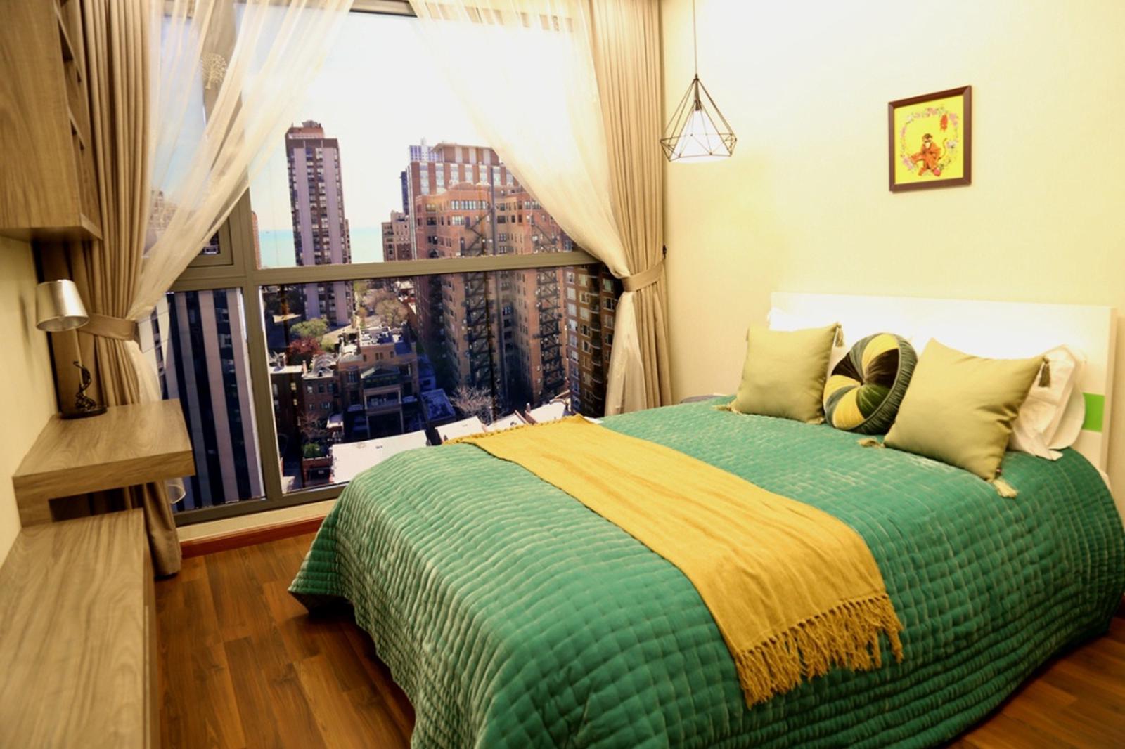 Khác với phòng ngủ lớn, phòng ngủ nhỏ dành cho trẻ nhỏ hoặc cho khách lại được trang trí với tông màu trẻ trung, tươi tắn, cộng thêm khung cửa kính trong suốt tạo cảm giác thích thú khi được “chạm” với không gian bên ngoài.