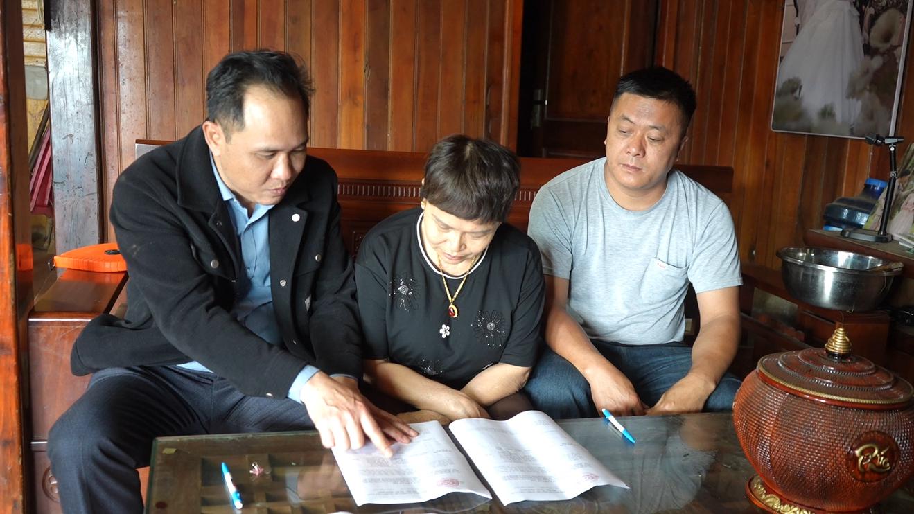 Cán bộ UBND phường Hàm Rồng đến nhà người dân tổ 3 để lấy ý kiến người dân ề việc sắp xếp đơn vị hành chính các cấp trên địa bàn tỉnh Lào Cai. Ảnh: ND