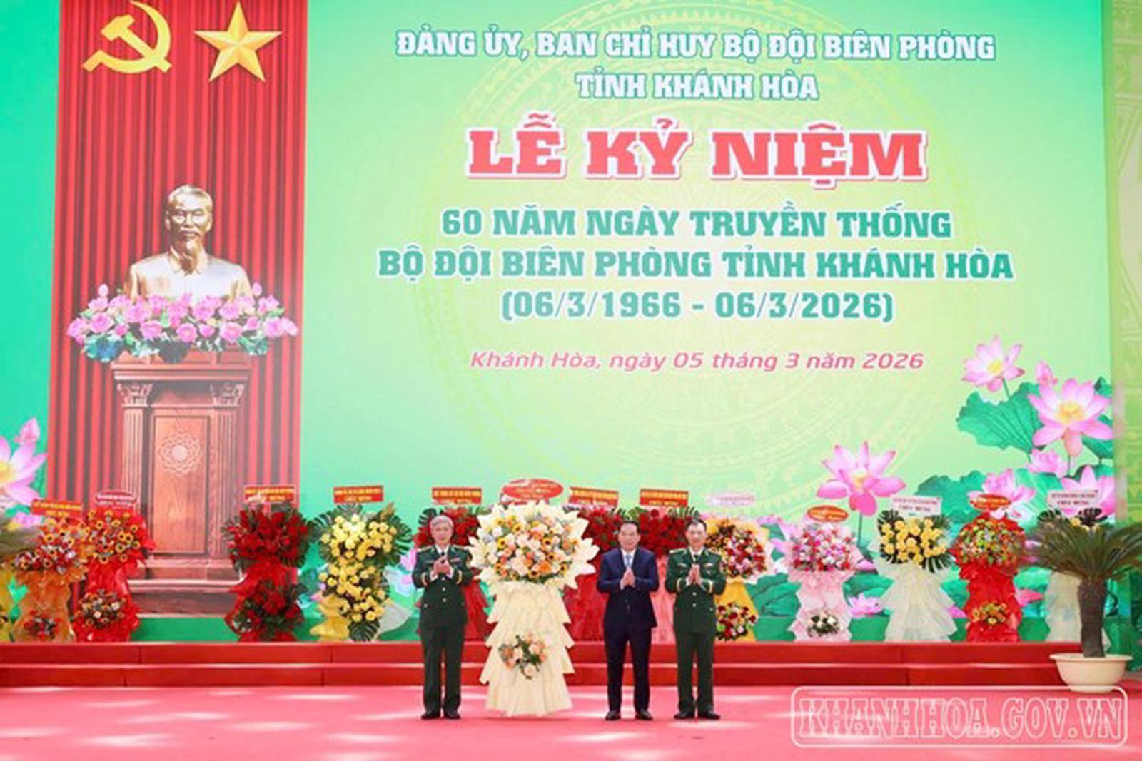 (Thanh tra) - Sáng 5/3, tại Cung Văn hóa Thiếu nhi tỉnh Khánh Hòa, Đảng ủy, Ban Chỉ huy Bộ đội Biên phòng (BĐBP) tỉnh Khánh Hòa tổ chức Lễ kỷ niệm 60 năm Ngày truyền thống BĐBP Khánh Hòa (6/3/1966 – 6/3/2026).