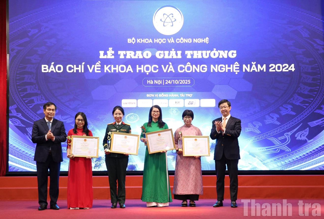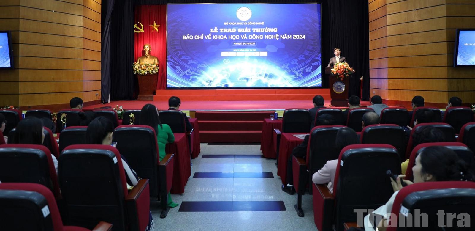 (Thanh tra) - Chiều 24/10, tại Hà Nội, Bộ Khoa học và Công nghệ (KH&CN) tổ chức Lễ trao Giải thưởng Báo chí về KH&CN năm 2024, vinh danh 24 tác phẩm xuất sắc trong hơn 200 tác phẩm dự thi do Thứ trưởng Bùi Hoàng Phương chủ trì.