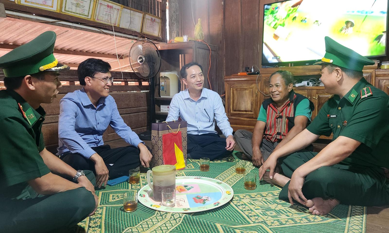 Lãnh đạo UBND xã Hướng Lập và lực lượng bộ đội biên phòng thăm hỏi, động viên già làng. Ảnh: Khánh Anh