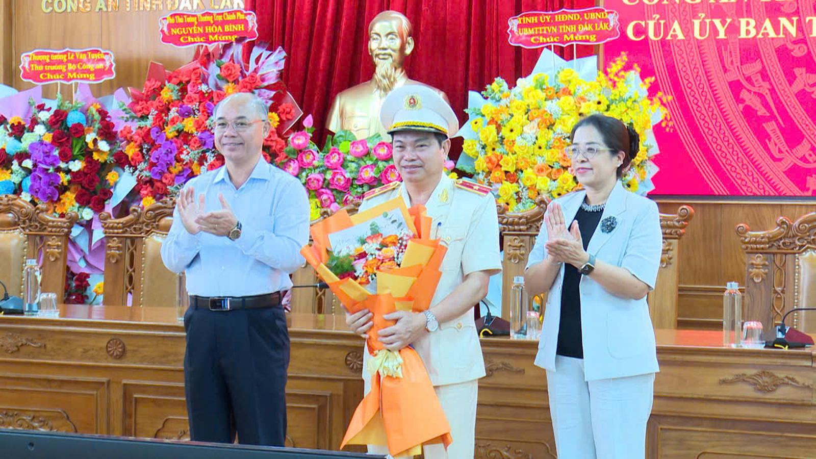 Công bố các quyết định của Bộ trưởng Bộ Công an về việc bổ nhiệm 6 cán bộ giữ chức Phó Giám đốc Công an tỉnh Đắk Lắk, bao gồm: Đại tá Trần Quang Hiếu, Đại tá Lê Hữu Tuấn, Đại tá Trần Bình Hưng, Đại tá Y San Adrơng, Đại tá Võ Duy Tuấn, Đại tá Nguyễn Khỏe.