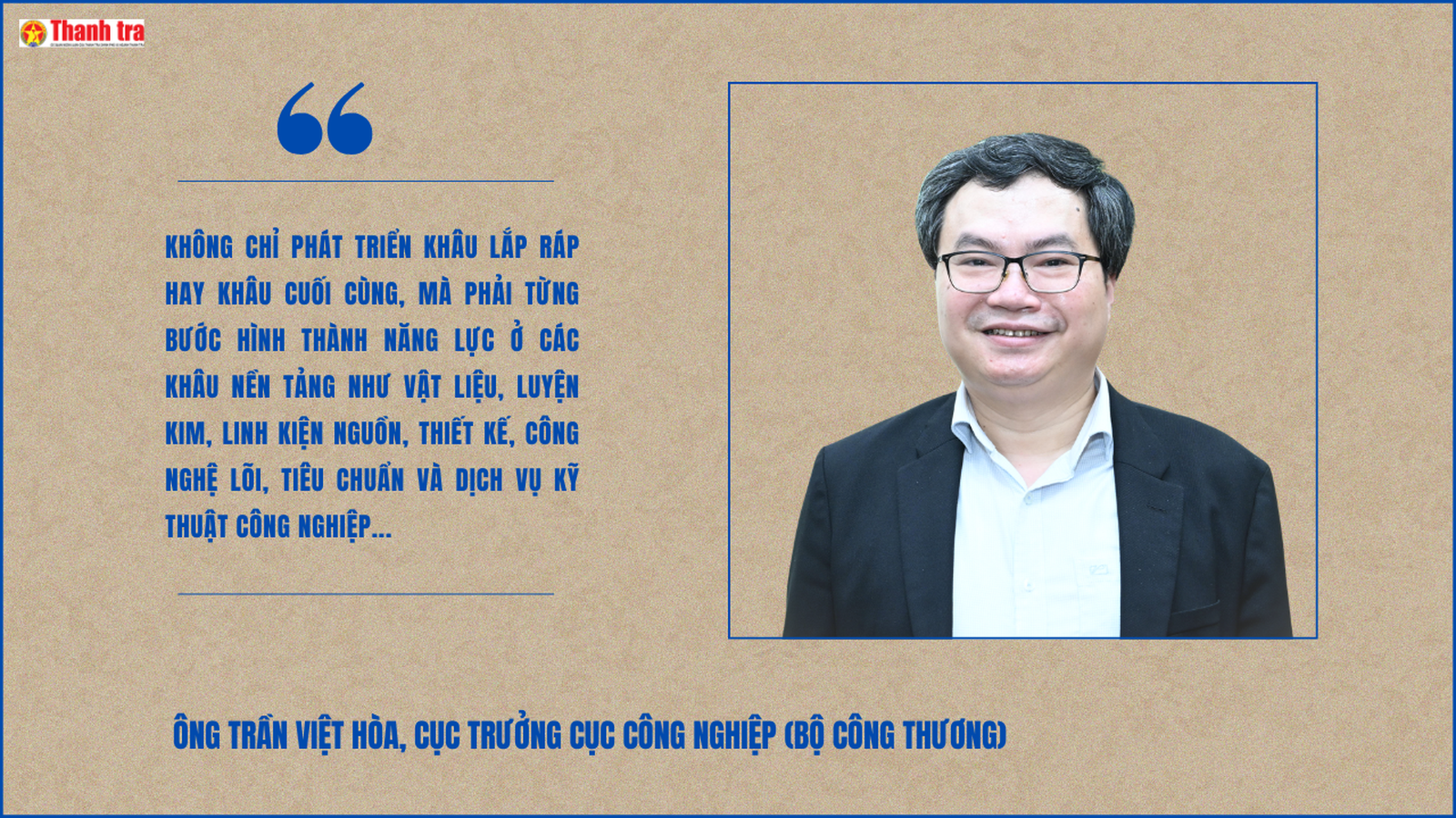 Báo Thanh tra đã trao đổi với ông Trần Việt Hòa, Cục trưởng Cục Công nghiệp (Bộ Công Thương), nhằm làm rõ các định hướng chính sách, giải pháp tháo gỡ điểm nghẽn, nâng cao năng lực nội sinh của nền sản xuất, cũng như vai trò của cơ quan quản lý trong việc đồng hành, hỗ trợ doanh nghiệp phát triển.