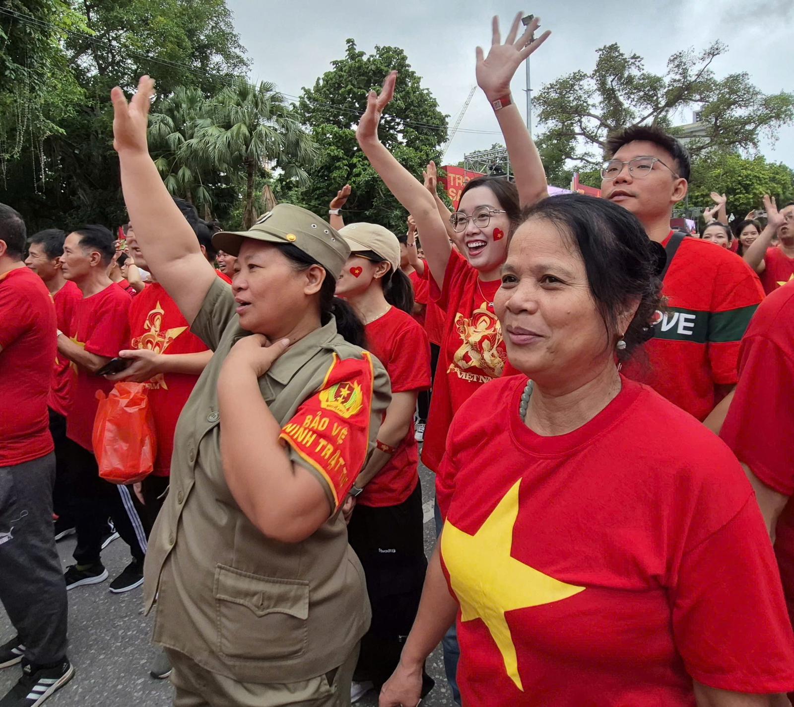 Những người tham gia khoác áo đỏ sao vàng, cùng hướng về Quảng trường Ba Đình theo dõi lễ thượng cờ Tổ quốc, đồng loạt hát Quốc ca và lan tỏa thông điệp đoàn kết, vì một Việt Nam hùng cường, bền vững.
