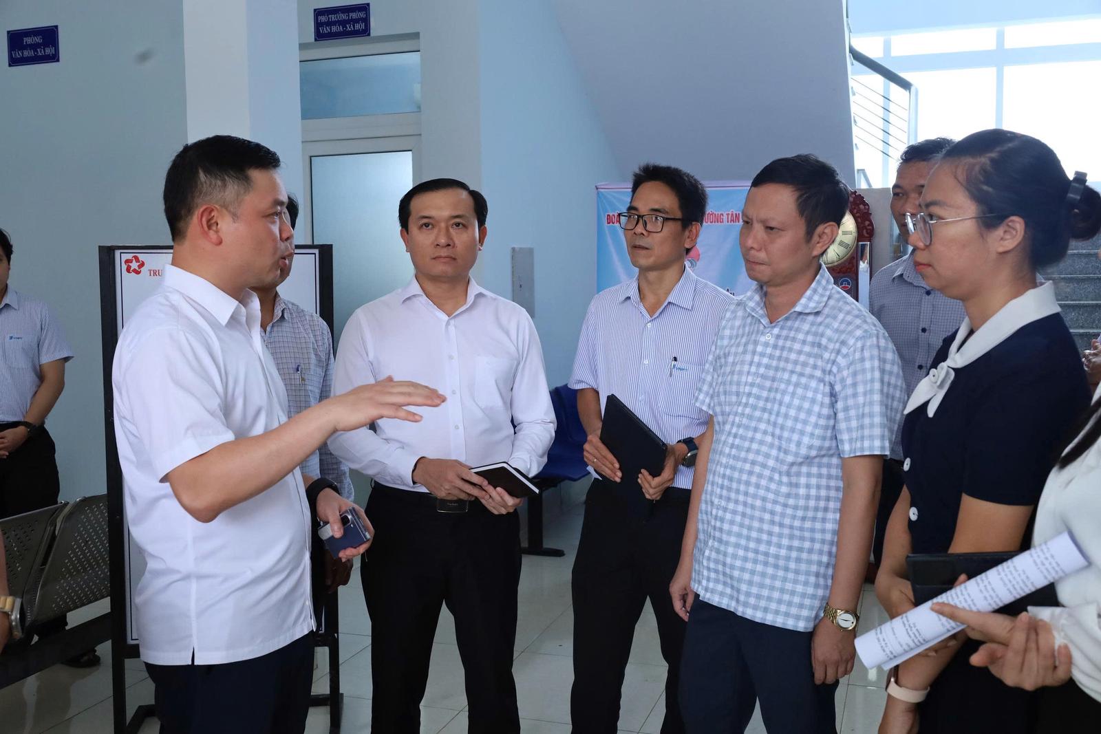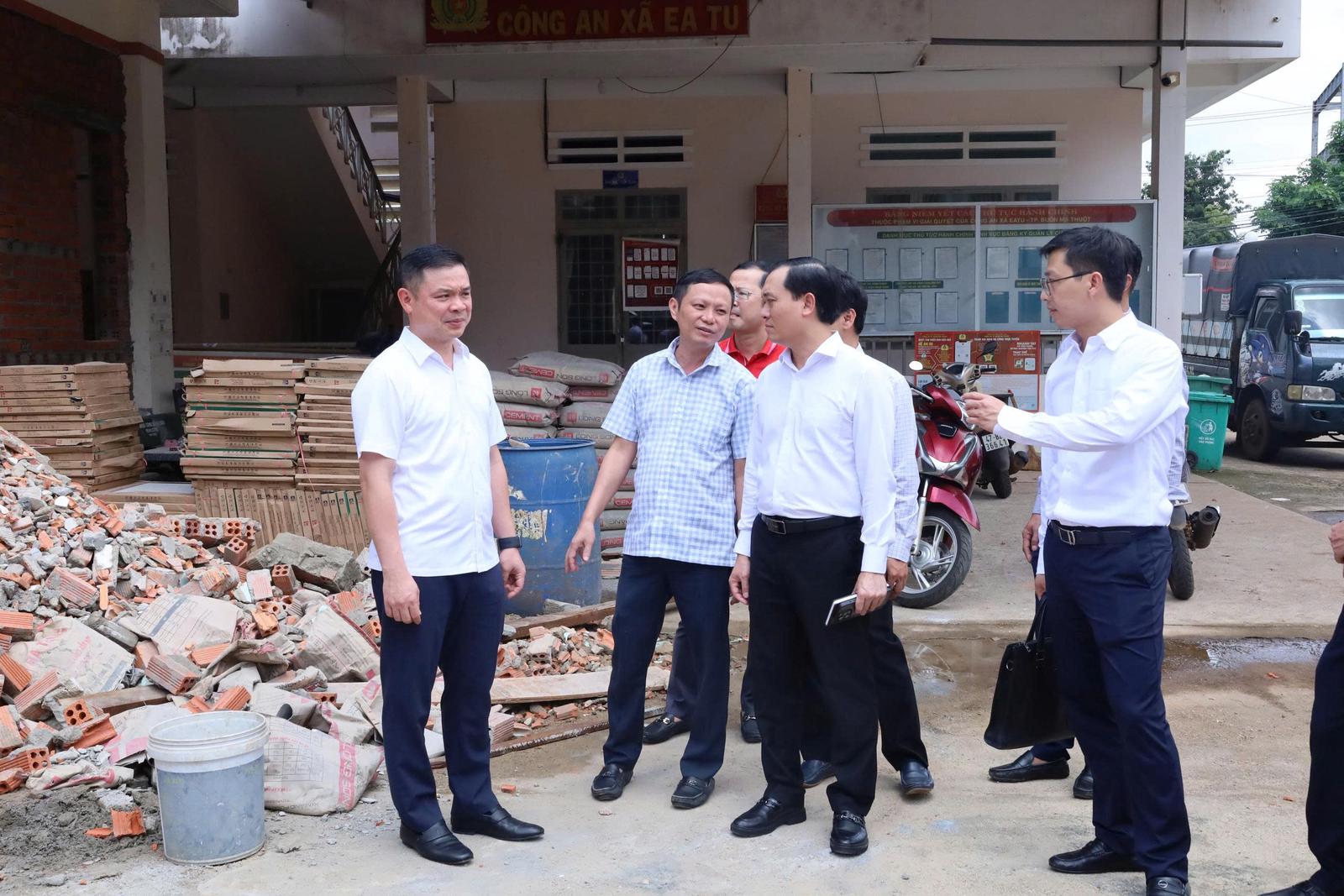 Lãnh đạo phường Tân An báo cáo với Phó Bí thư Tỉnh ủy Đắk Lắk Đỗ Hữu Huy về tình hình hạ tầng cơ sở vật chất, nhằm đảm bảo hiệu quả chuyển đổi số. Ảnh: ĐL