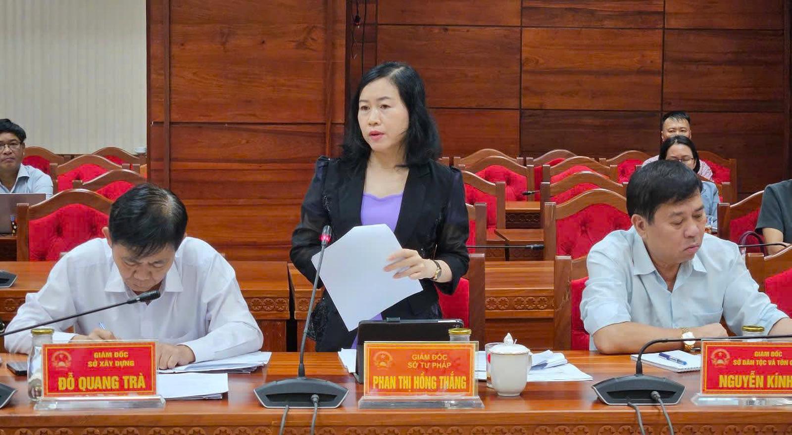 Giám đốc Sở Tư pháp Đắk Lắk Phan Thị Hồng Thắng đóng góp ý kiến tại phiên họp. Ảnh: KL