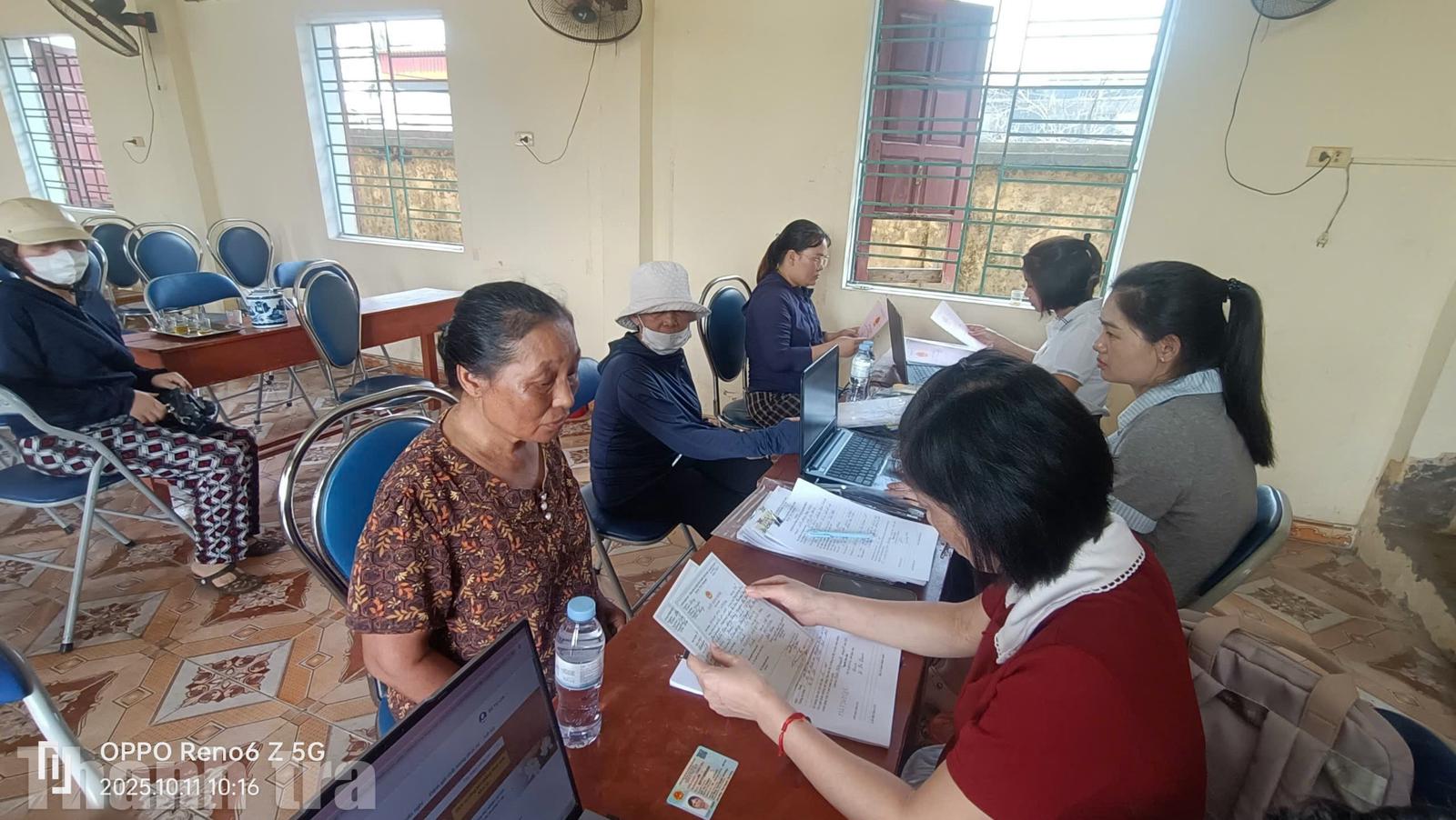 Bà Phạm Thị Hồng (69 tuổi, tổ dân phố Lâm Động 3) vui mừng nói: “Lần đầu tiên tôi thấy chính quyền về tận nơi phục vụ. Nhà tôi cách trụ sở phường 5 km, đi lại khó khăn, nay không cần nhờ con cháu nữa. Cán bộ đến tận tổ dân phố làm thủ tục nhanh gọn, thân thiện, tôi rất cảm động và biết ơn.” Ảnh: KT