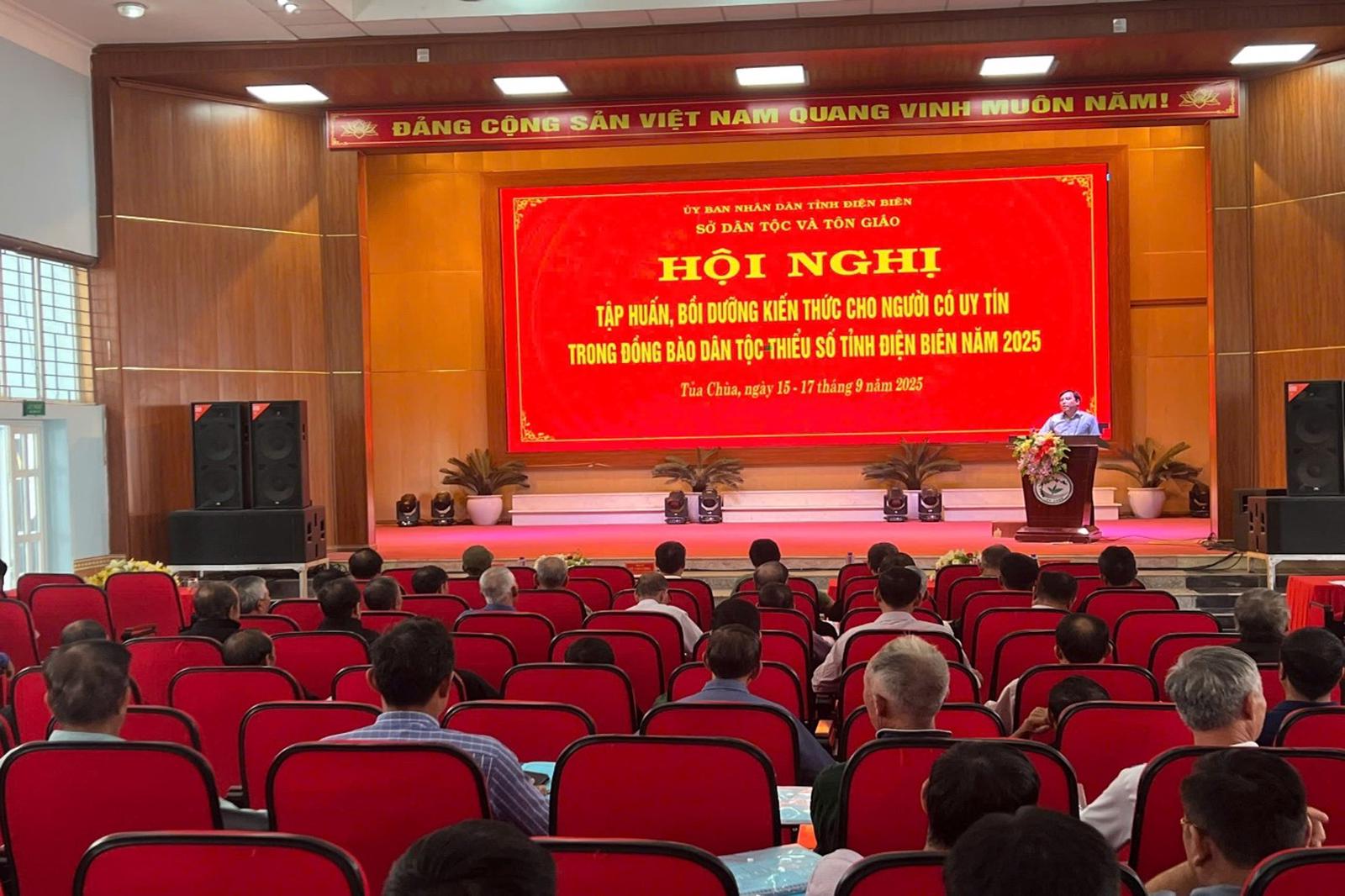 Sở Dân tộc và Tôn giáo tổ chức tập huấn, bồi dưỡng kiến thức cho đại biểu là người có uy tín trong đồng bào dân tộc thiểu số tại xã Tủa Chùa. Ảnh:dienbien.gov.vn