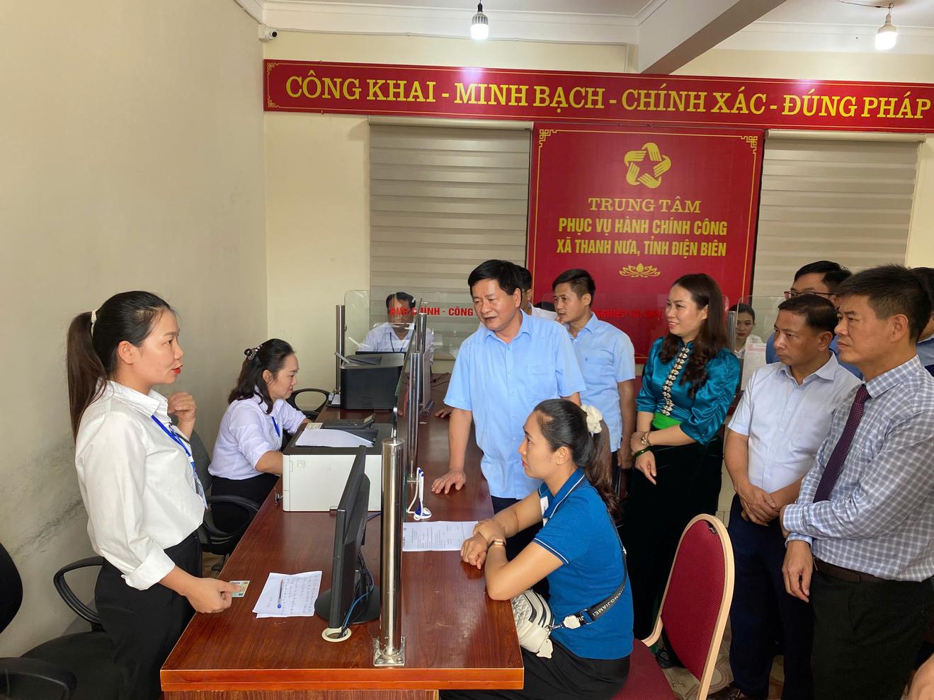 Chủ tịch UBND tỉnh Điện Biên Lê Thành Đô kiểm tra Trung tâm Phục vụ hành chính công xã Thanh Nưa. Ảnh: Ngọc Thủy