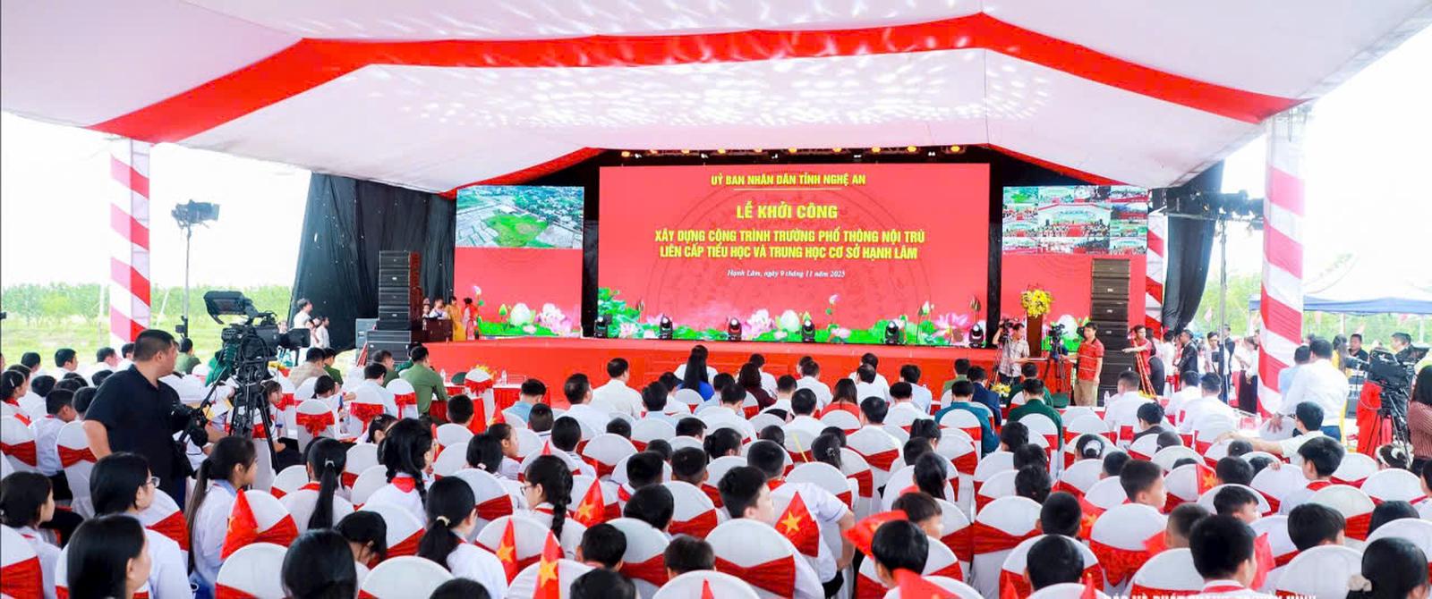 Tại điểm cầu xã Hạnh Lâm, đồng chí Lê Hồng Vinh – Phó Bí thư Tỉnh ủy, Chủ tịch UBND tỉnh Nghệ An nhấn mạnh: “Đây không chỉ là những công trình giáo dục đơn thuần mà là công trình của niềm tin, của ước mơ, của tương lai. Mỗi viên gạch, mỗi hàng cột được dựng lên phải chứa đựng tình yêu thương, trách nhiệm và sự kỳ vọng của Đảng, Nhà nước và Nhân dân đối với thế hệ trẻ nơi biên cương.”