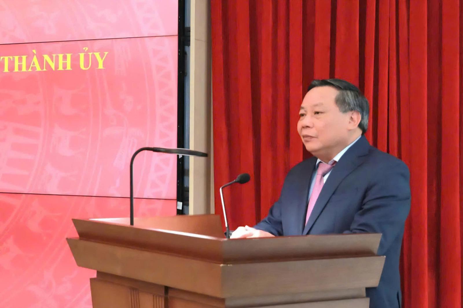 Phó Bí thư Thường trực Thành ủy Hà Nội Nguyễn Văn Phong phát biểu. Ảnh: Thanh Hải