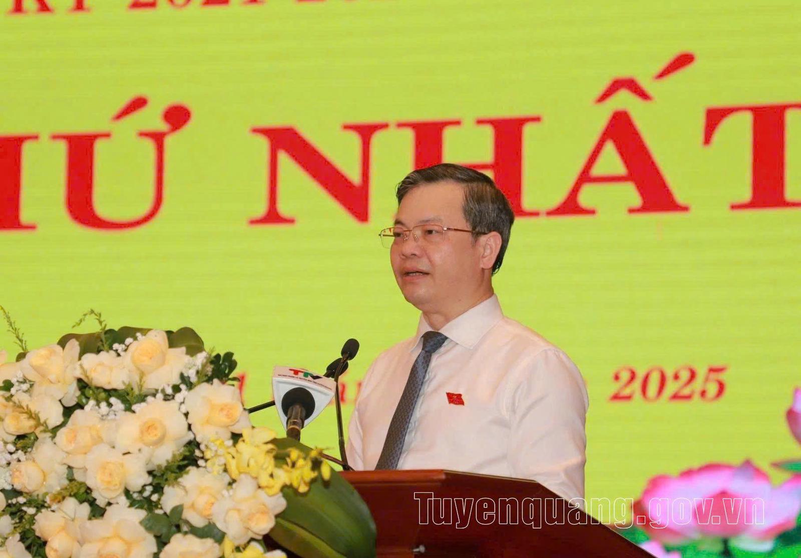 Tân Chủ tịch HĐND tỉnh Tuyên Quang Nguyễn Văn Sơn khẳng định: Những nội dung thông qua tại Kỳ họp thứ Nhất là nền tảng, cơ sở pháp lý có ý nghĩa hết sức quan trọng. Trên cơ sở chức năng, nhiệm vụ, quyền hạn của HĐND tỉnh và đại biểu HĐND tỉnh được quy định trong Hiến pháp, pháp luật, kế thừa những kinh nghiệm, thành tựu của HĐND các khóa trước, HĐND tỉnh Tuyên Quang hình thành trên cơ sở hợp nhất HĐND tỉnh Tuyên Quang và HĐND tỉnh Hà Giang cần nhận thức sâu sắc hơn về niềm tin, sự kỳ vọng của cử tri, nhận diện đầy đủ những khó khăn, thuận lợi trong giai đoạn phát triển mới của đất nước và tỉnh mới sau khi hợp nhất.