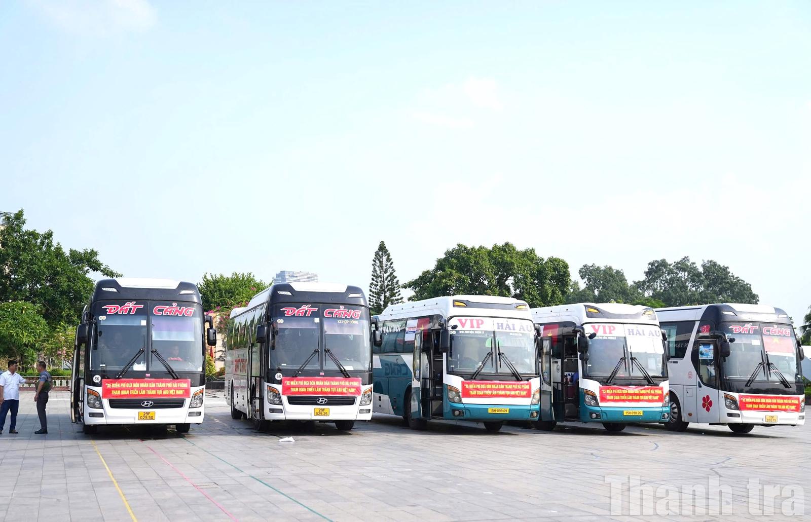 Nhiều nhà xe đã tham gia vào hoạt động đưa đón Nhân dân miễn phí đến Triển lãm. Ảnh: TT