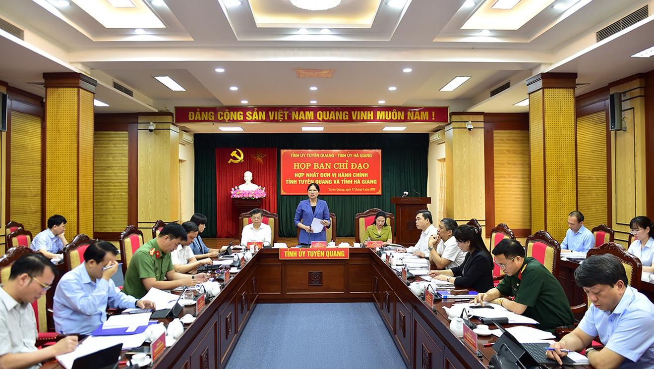 Tại cuộc họp, Ban Thường vụ Đảng ủy UBND tỉnh Tuyên Quang đã thông qua dự thảo Đề án hợp nhất đơn vị hành chính tỉnh Tuyên Quang và tỉnh Hà Giang gồm 4 phần: Căn cứ chính trị, pháp lý và sự cần thiết sắp xếp, hợp nhất đơn vị hành chính cấp tỉnh; lịch sử hình thành và hiện trạng đơn vị hành chính cấp tỉnh; phương án sắp xếp đơn vị hành chính cấp tỉnh; đánh giá tác động và tổ chức thực hiện.