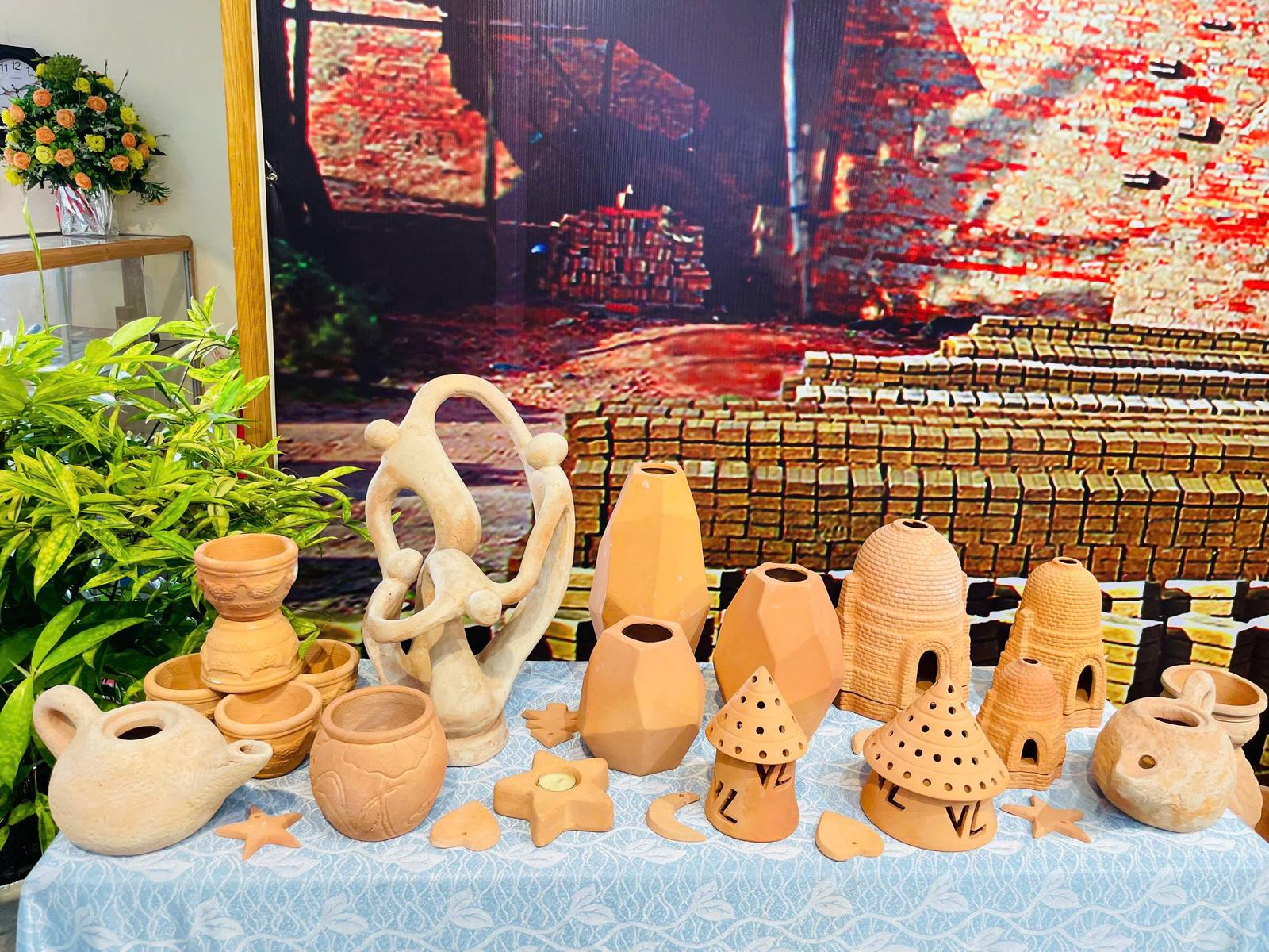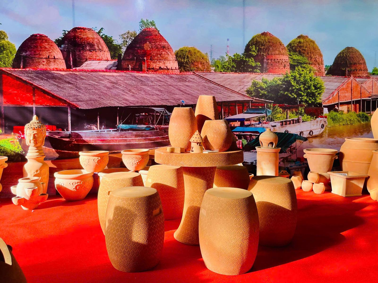 Trưng bày các sản phẩm gốm tại triển lãm. Ảnh: cantho.gov.vn