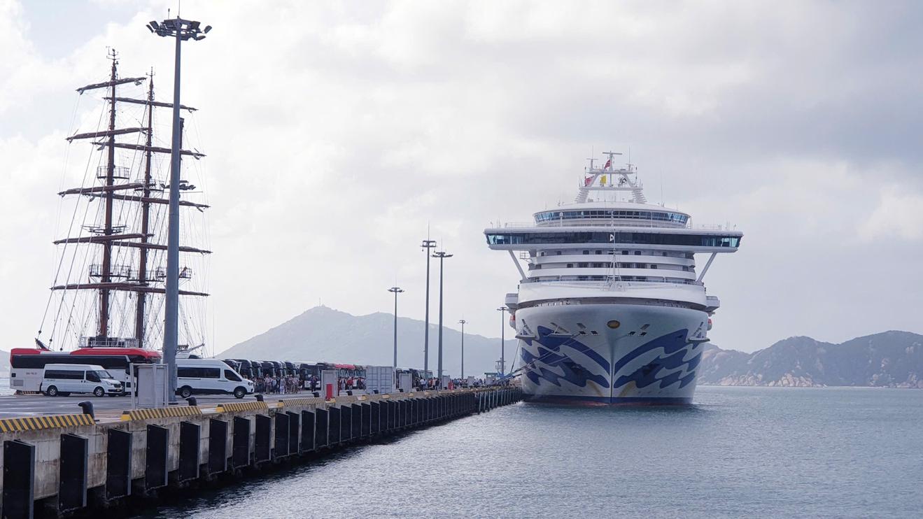 Tàu Diamond Princess với khoảng 2.750 du khách chủ yếu quốc tịch Mỹ cập cảng Cam Ranh ngày 23/1/2026. Ảnh Sở VH-TT&DL