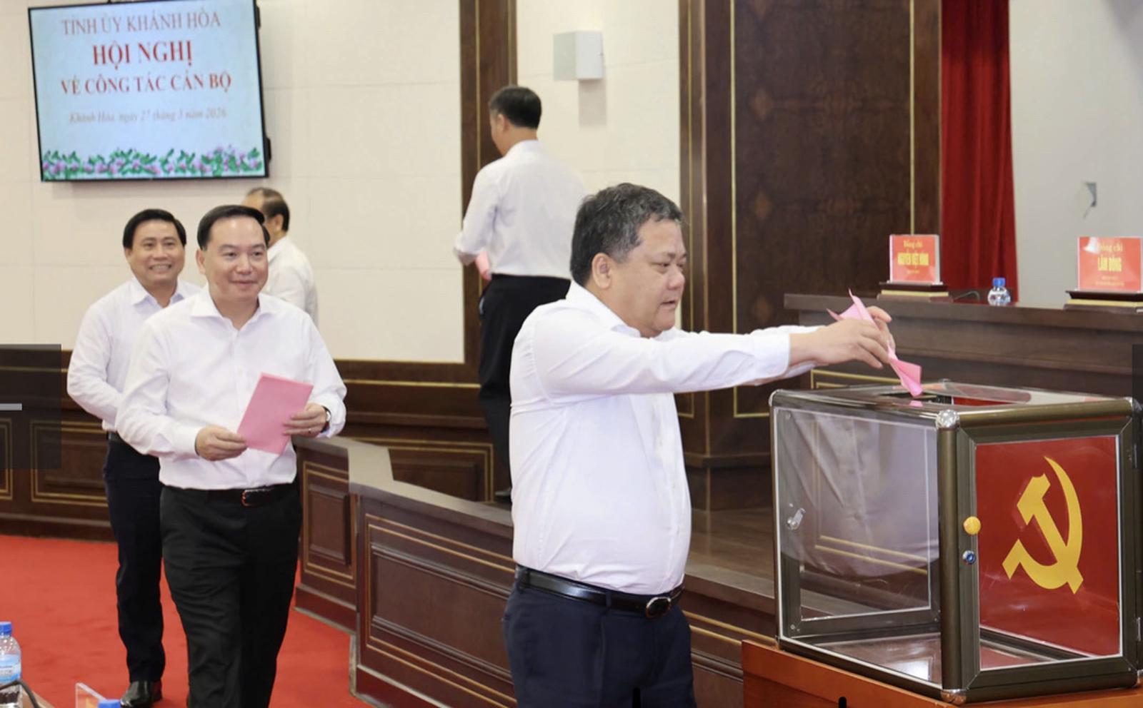 Ông Trần Phong bỏ phiếu thực hiện quy trình công tác cán bộ. Ảnh cổng Tỉnh uỷ Khánh Hòa