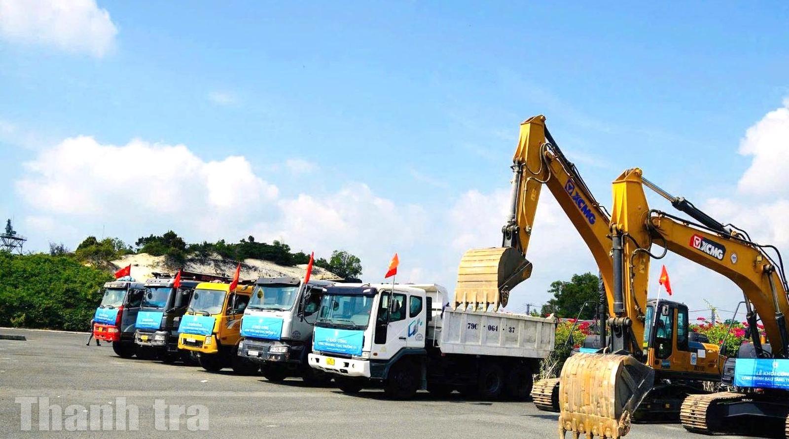 Nhà đầu tư huy động xe máy, thiết bị triển khai ngay công trình Bảo tàng Trường sa. Ảnh: MN