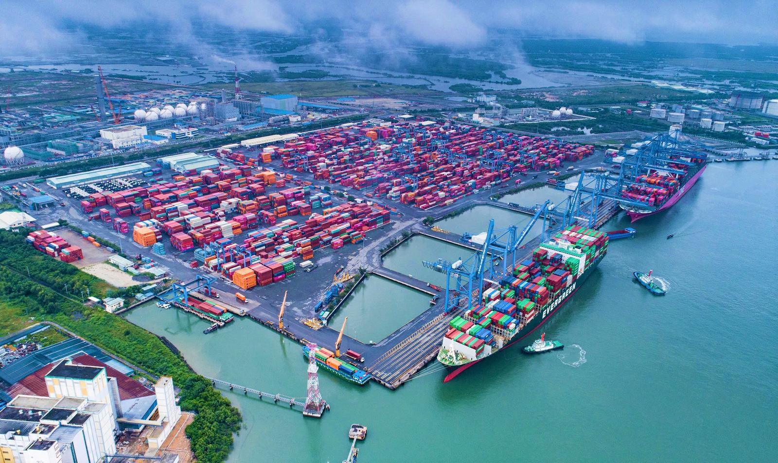 Khu thương mại tự do sẽ được tổ chức theo mô hình linh hoạt, bao gồm các khu chức năng như khu sản xuất, khu cảng, hậu cần cảng, trung tâm logistics và khu thương mại – dịch vụ. Trong ảnh là một cảng biển nằm trong khu vực cảng biển Cái Mép. Ảnh: Mạnh Khá
