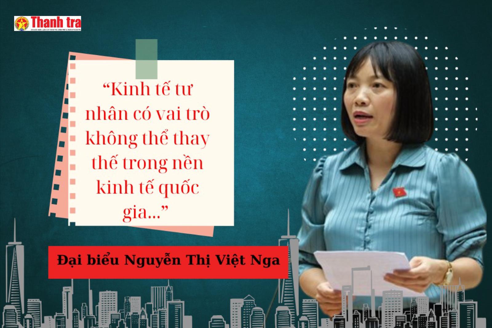 Để kinh tế tư nhân phát huy tối đa tiềm năng, theo bà Nga, cần nhanh chóng triển khai cải cách thể chế, chính sách và môi trường kinh doanh. Tổng Bí thư Tô Lâm đã khẳng định: Một nền kinh tế cường thịnh không thể chỉ dựa vào khu vực nhà nước hay đầu tư nước ngoài, mà phải dựa vào nội lực là khu vực tư nhân vững mạnh, đóng vai trò tiên phong trong đổi mới và phát triển đất nước. Từ đó, bà Nga nhấn mạnh: “Chỉ khi tháo gỡ những rào cản, tạo điều kiện thuận lợi về cơ chế, chính sách, kinh tế tư nhân mới có thể thực sự trở thành động lực dẫn dắt nền kinh tế, giúp Việt Nam vươn tầm khu vực và thế giới”.