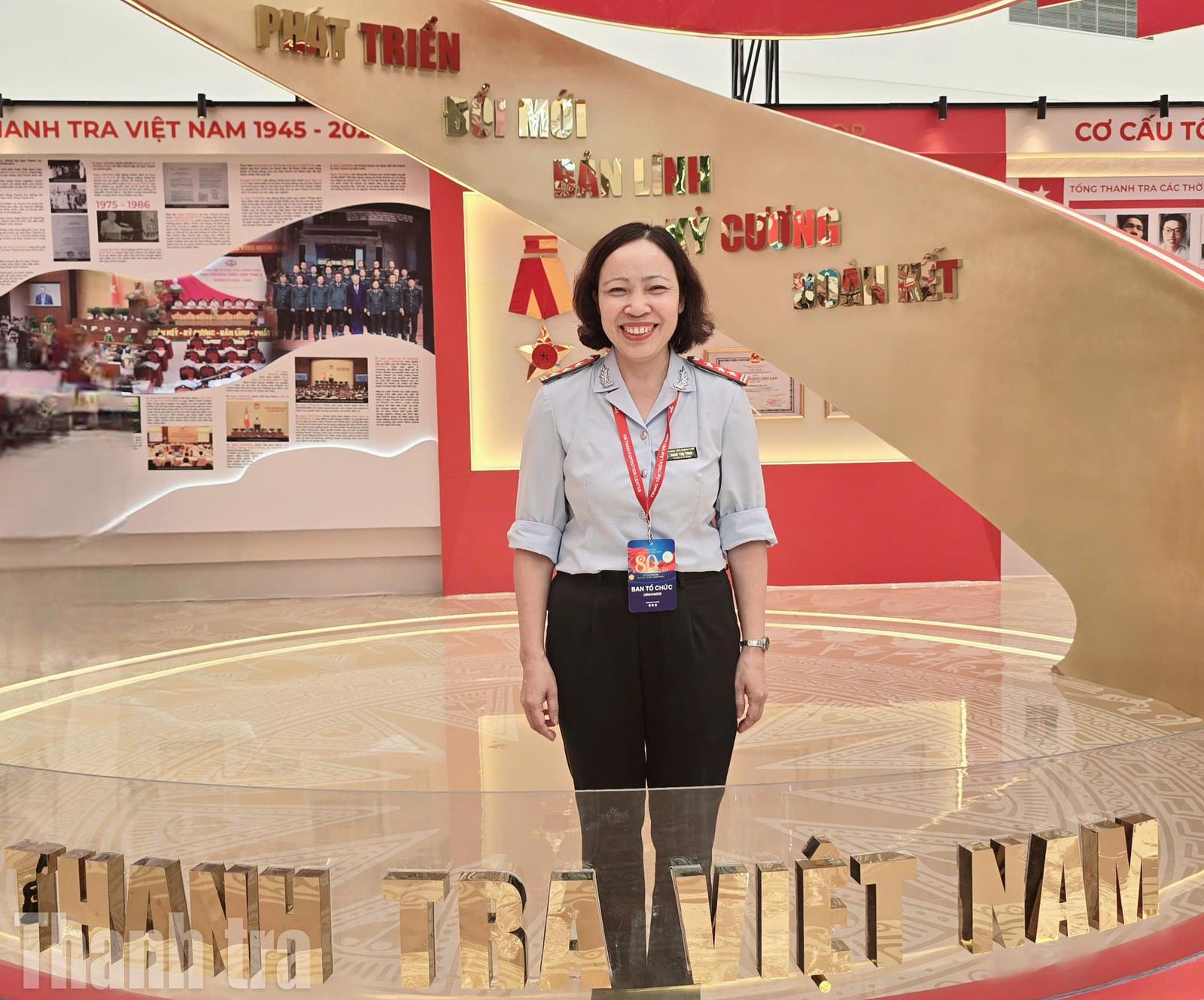 Từ một người quen ngồi ở hậu phương, chị trở thành “hướng dẫn viên đặc biệt”, trực tiếp giới thiệu gian trưng bày của ngành Thanh tra cho khách tham quan. “Ban đầu tôi có chút bỡ ngỡ, nhưng càng làm càng thấy tự hào, vì mình đang góp phần kể lại câu chuyện 80 năm của ngành”, chị tâm sự.