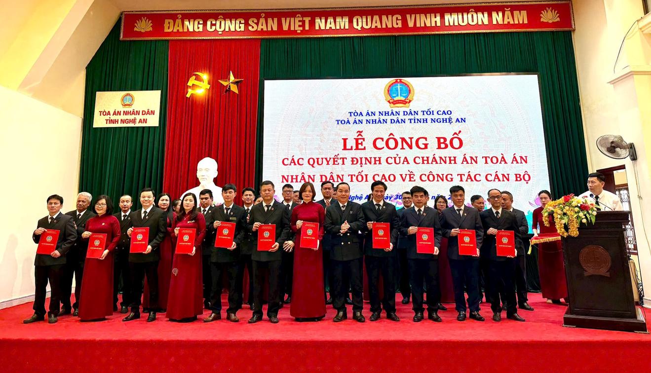 (Thanh tra) - Ngày 30/6, TAND tỉnh Nghệ An tổ chức công bố và trao quyết định bổ nhiệm Chánh án, Phó Chánh án TAND khu vực trực thuộc.