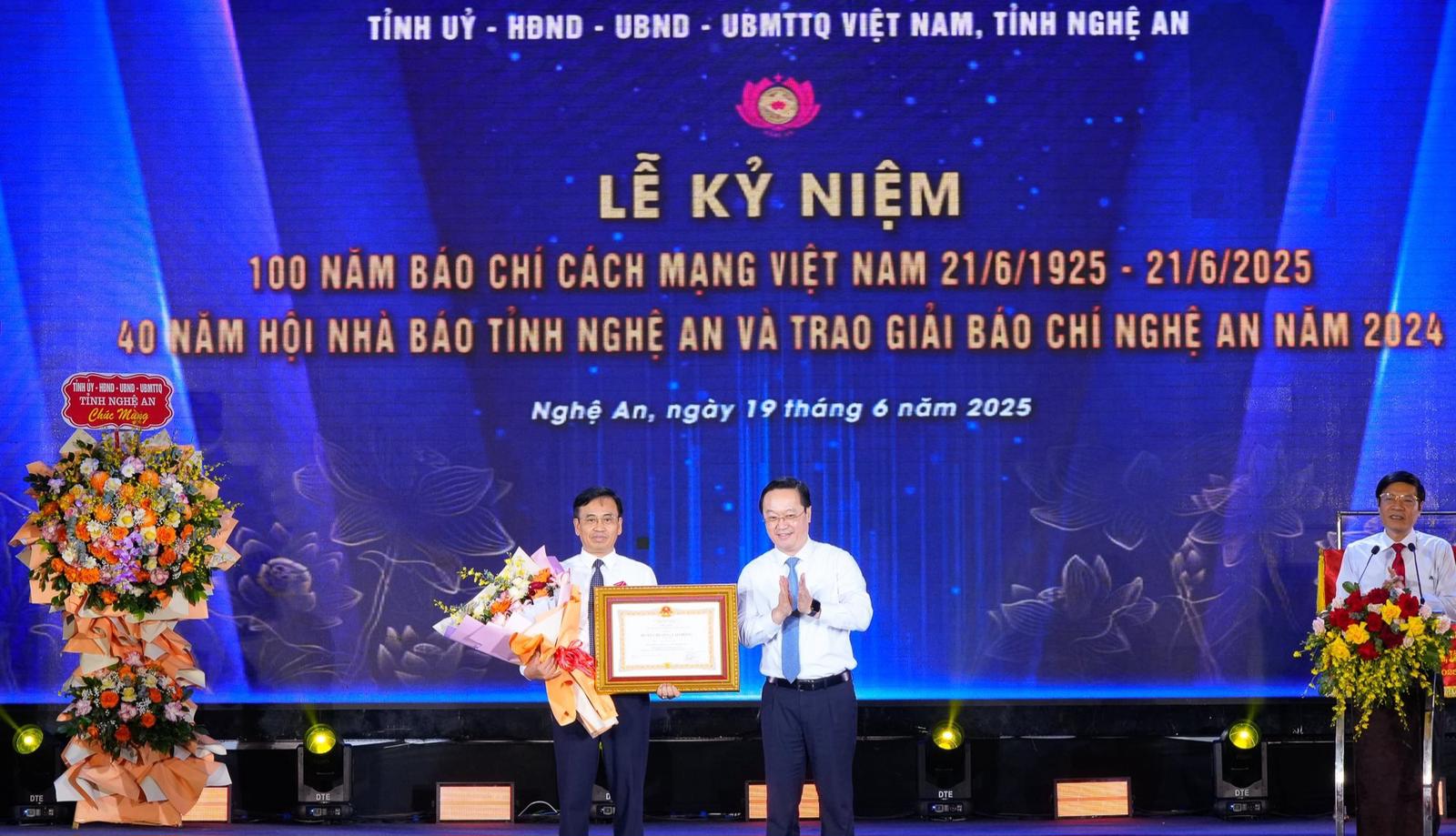 (Thanh tra) - Chiều 19/6, tỉnh Nghệ An trọng thể tổ chức Lễ kỷ niệm 100 năm Ngày Báo chí cách mạng Việt Nam (21/6/1925 - 21/6/2025), 40 năm thành lập Hội Nhà báo Nghệ An và trao Giải Báo chí Nghệ An năm 2024.