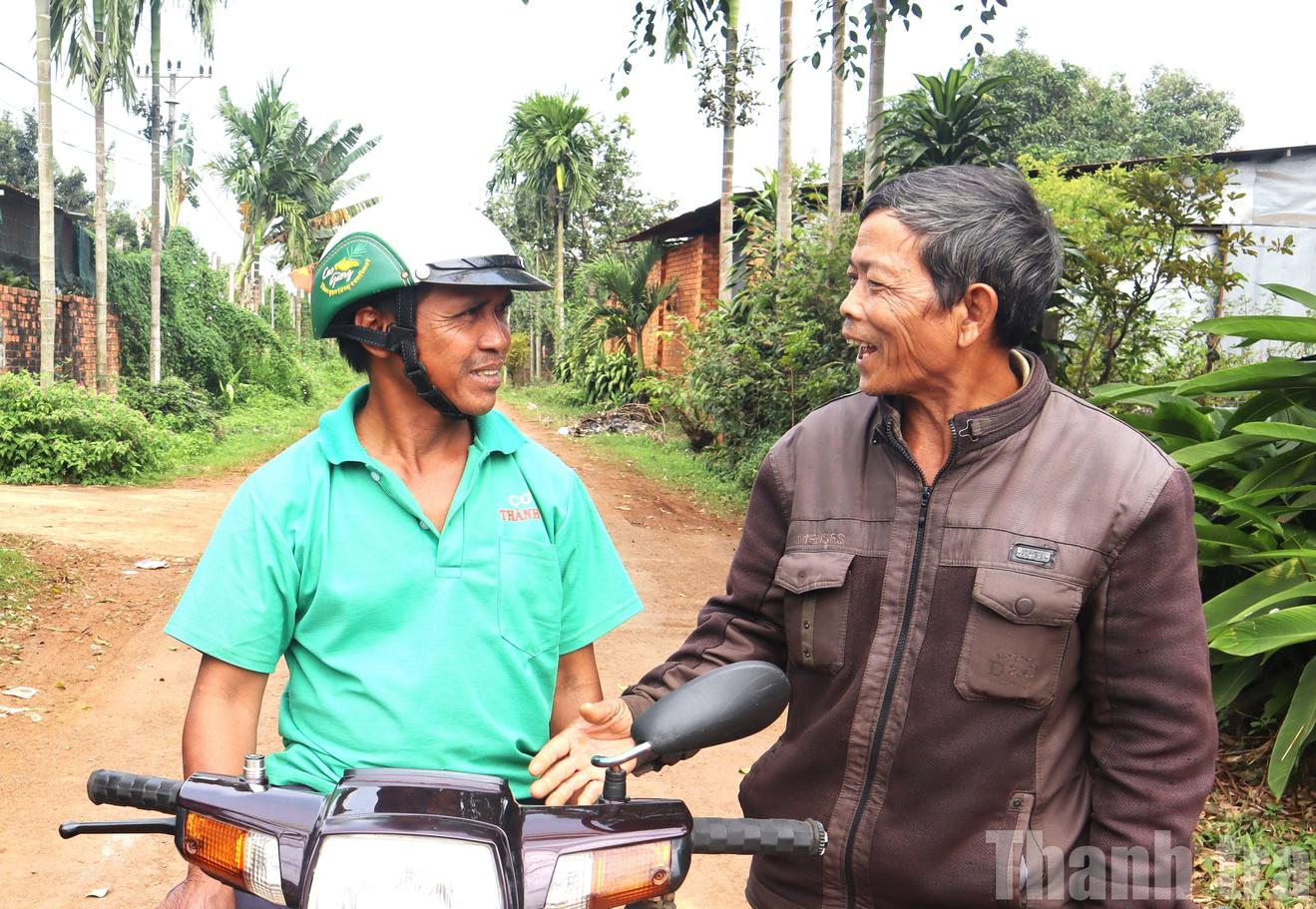 Người uy tín Y Yuôr Niê ở buôn Dhung, xã Cư M’gar (Đắk Lắk) thăm hỏi người dân về chuyện làm ăn. Ảnh: NG