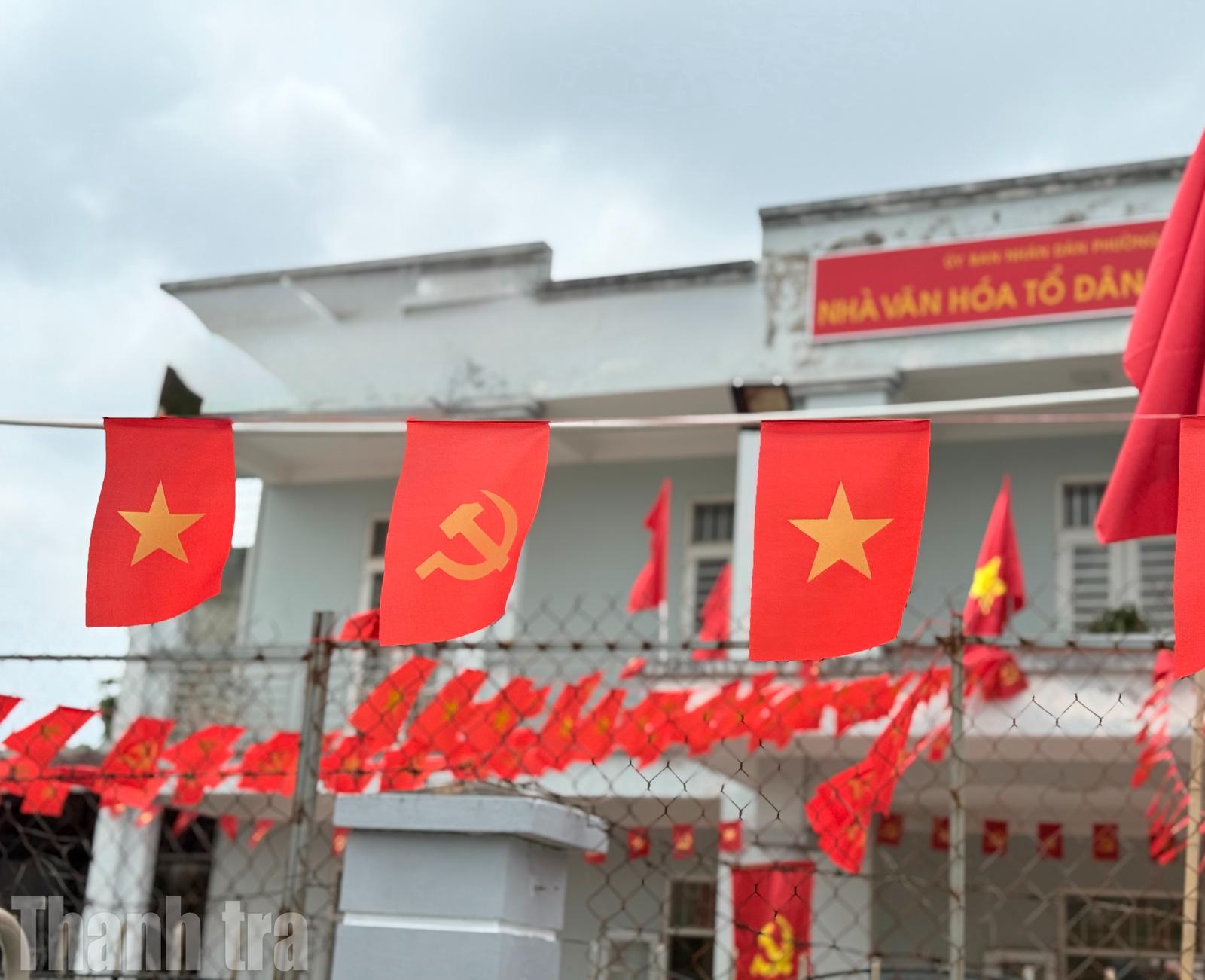 Cờ Đảng, cờ Tổ quốc được treo trong khuôn viên Nhà văn hóa Tổ dân phố số 1 +2+3. Ảnh: Bảo Anh