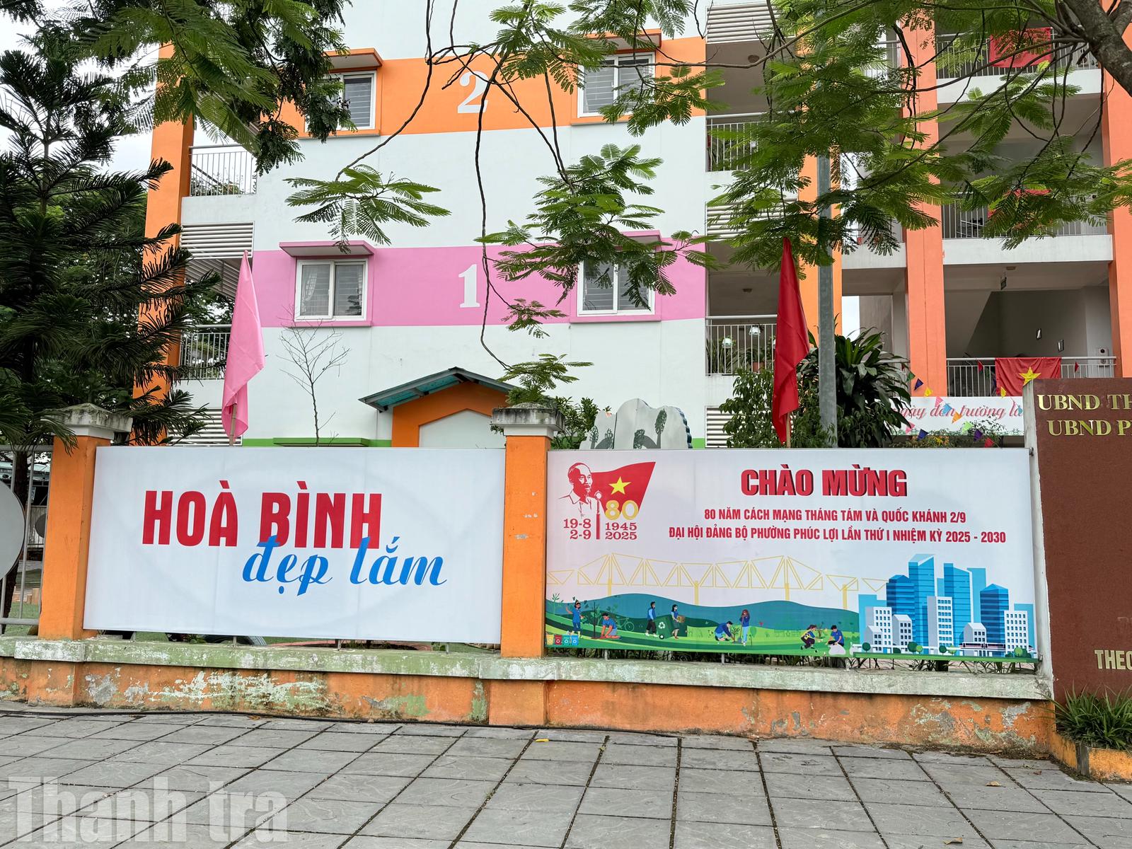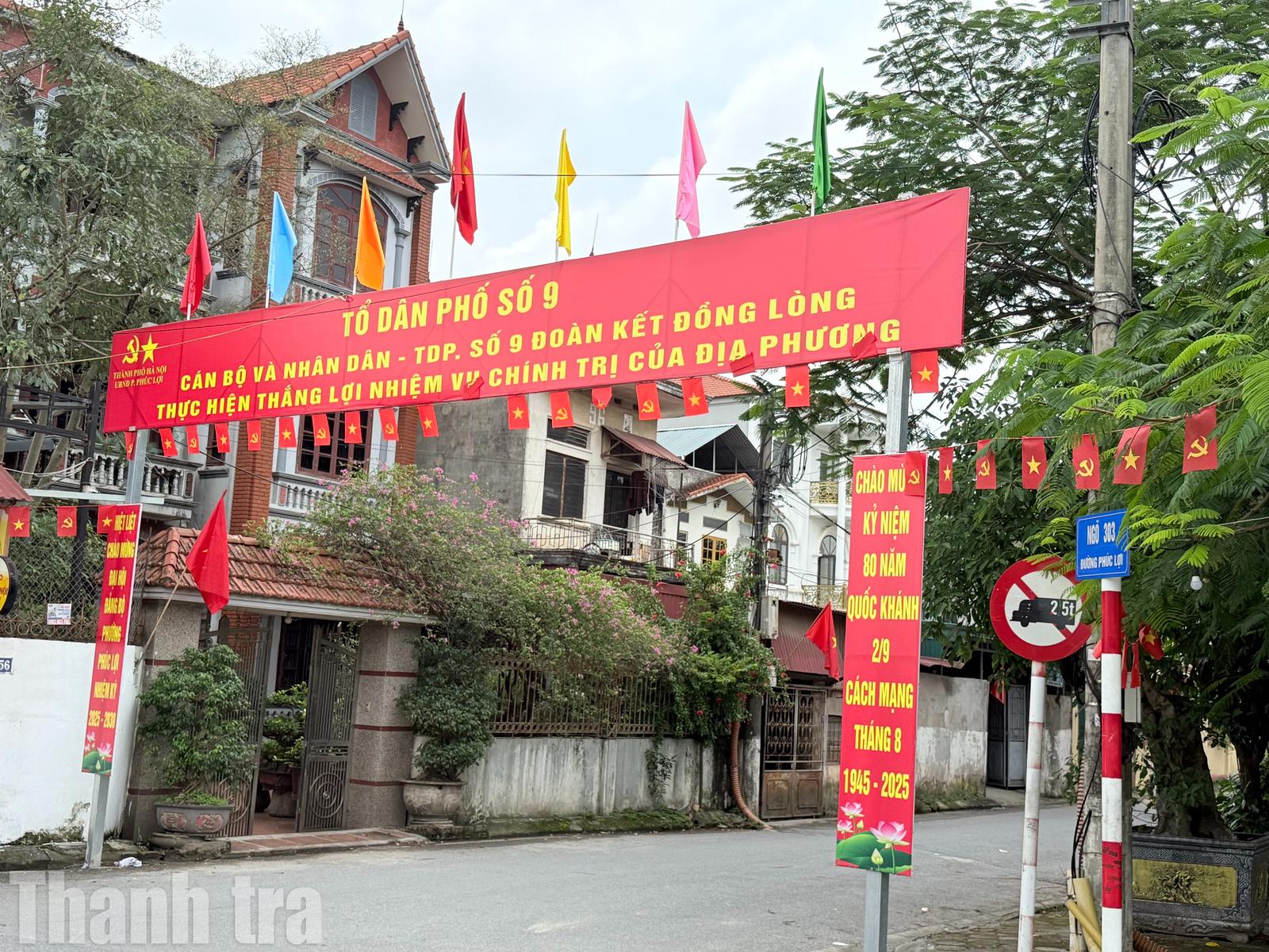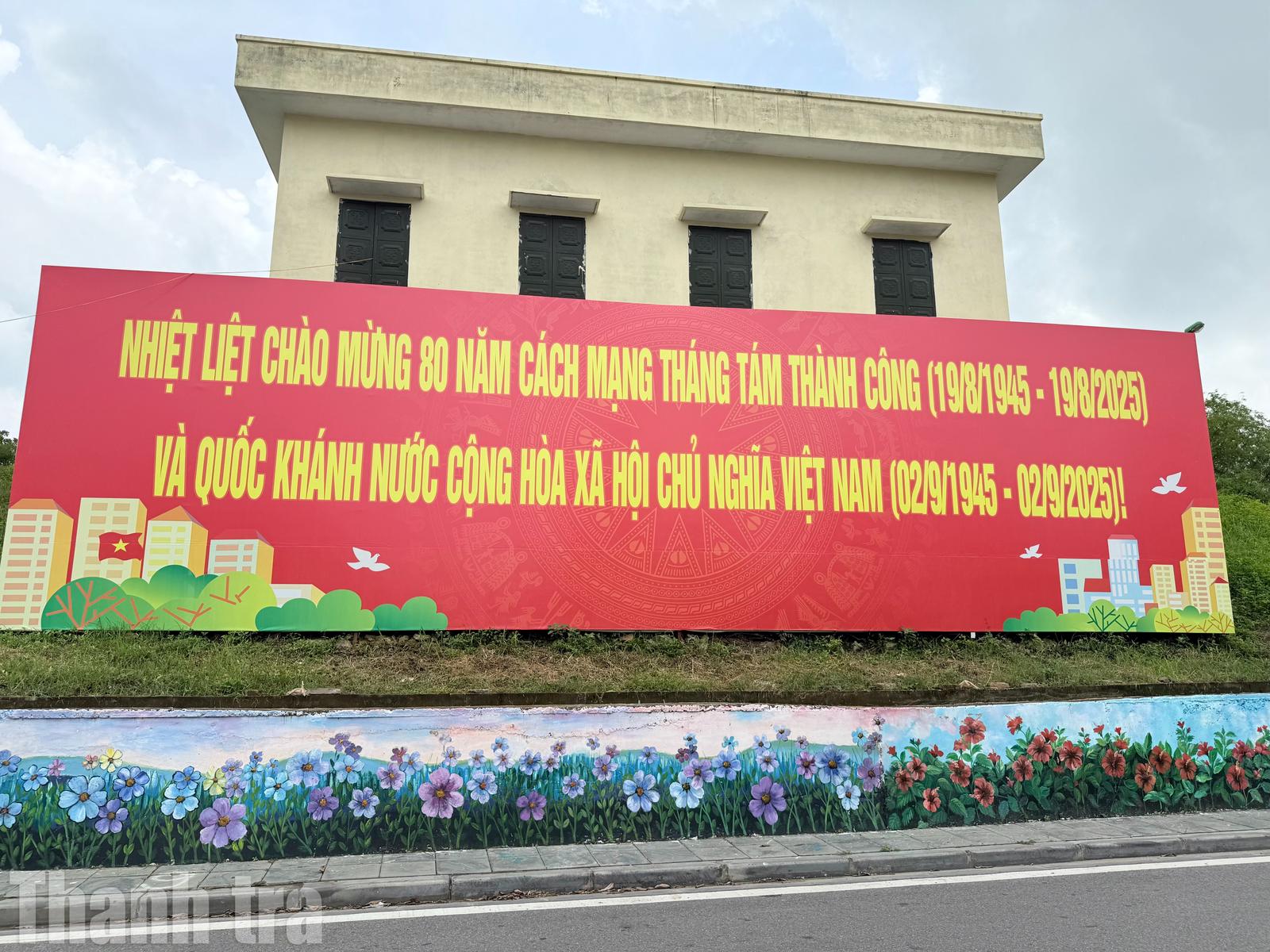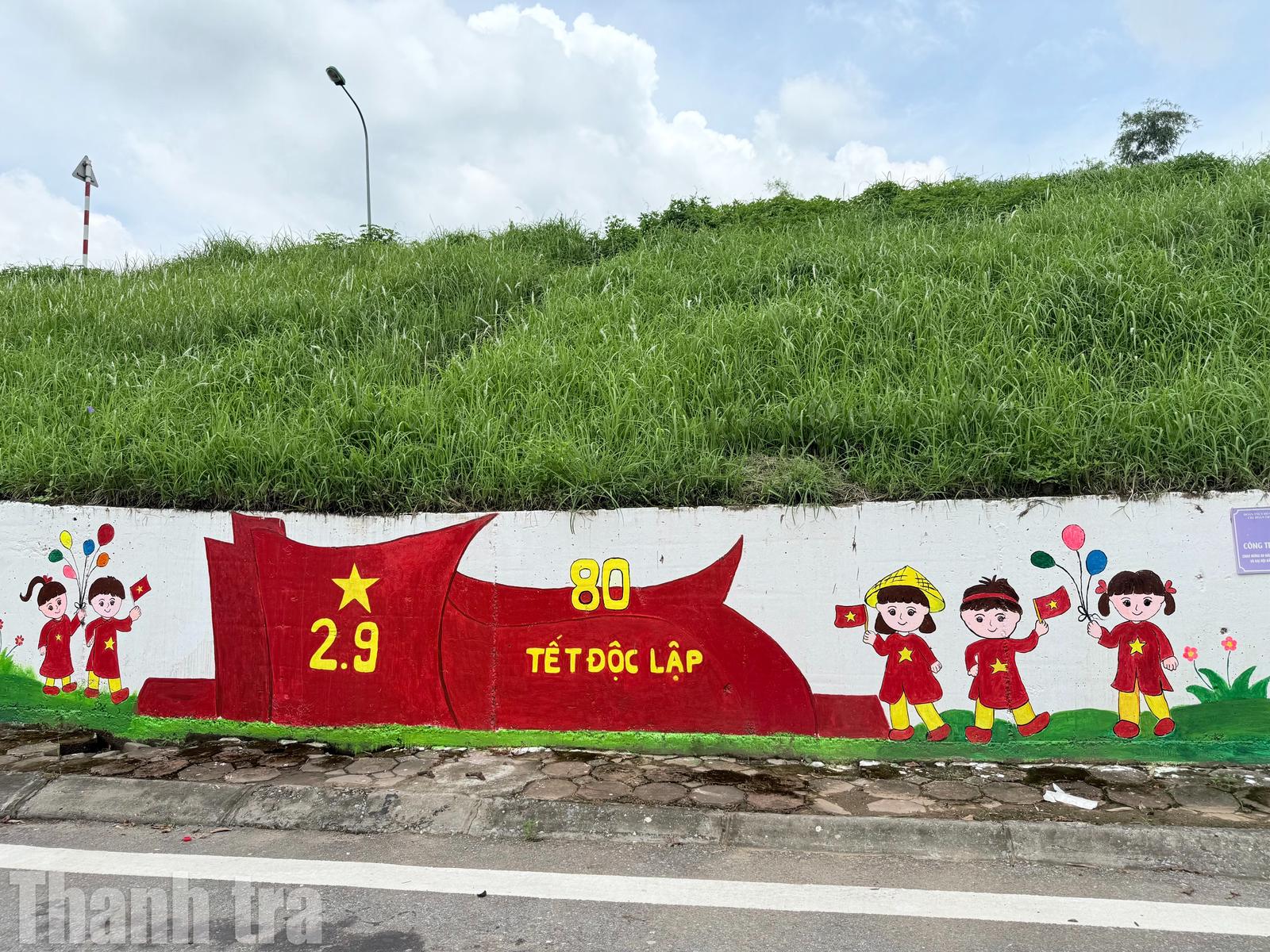 Những tấm bích họa tuyên truyền ngày Tết độc lập được trang hoàng trên các góc phố của phường Phúc Lợi. Ảnh: Bảo Anh