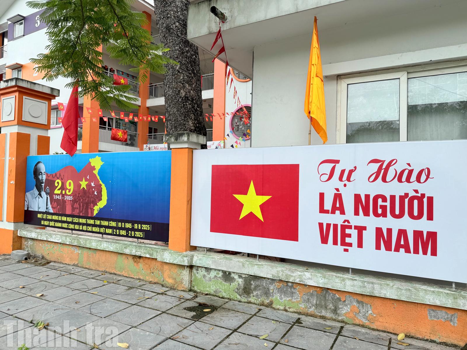 Lá cờ Tổ quốc được treo ở vị trí trang trọng trong ngày Tết độc lập. Ảnh: Bảo Anh