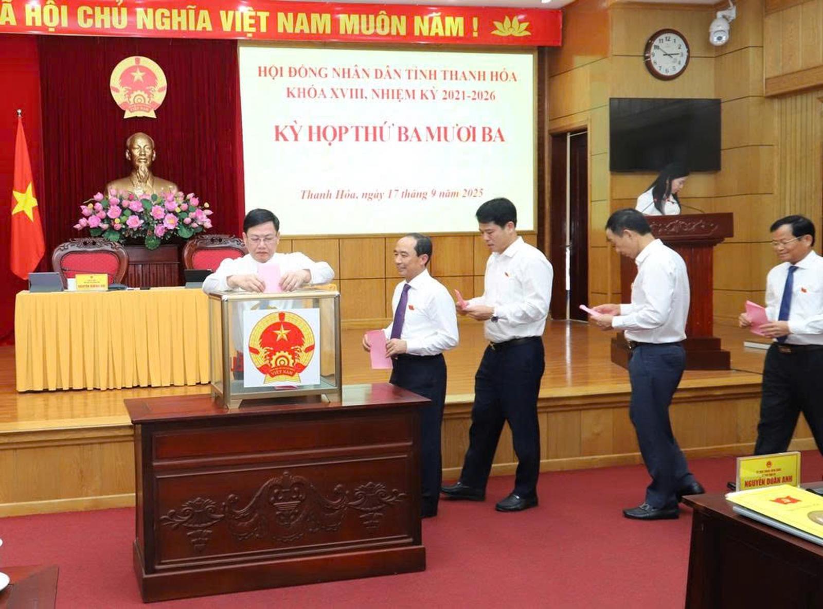 Các đại biểu bỏ phiếu tại kỳ họp thứ thứ 33 Hội đồng Nhân dân tỉnh Thanh Hóa. Ảnh: Văn Thanh
