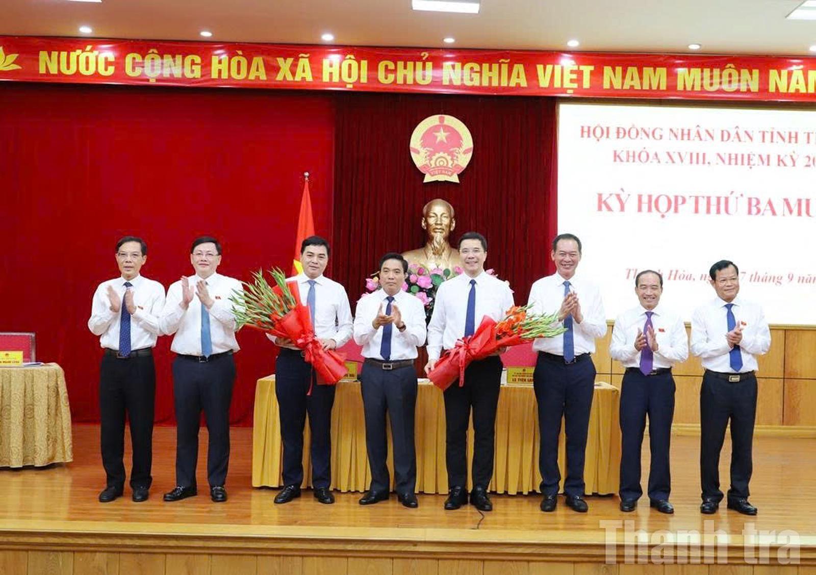 Tỉnh ủy, HĐND, UBND, UBMTTQ tỉnh Thanh Hóa tặng hoa chúc mừng Tân Chủ tịch UBND tỉnh Thanh Hóa và Tân Phó Bí thư Thường trực Tỉnh ủy Thanh Hóa. Ảnh: Văn Thanh
