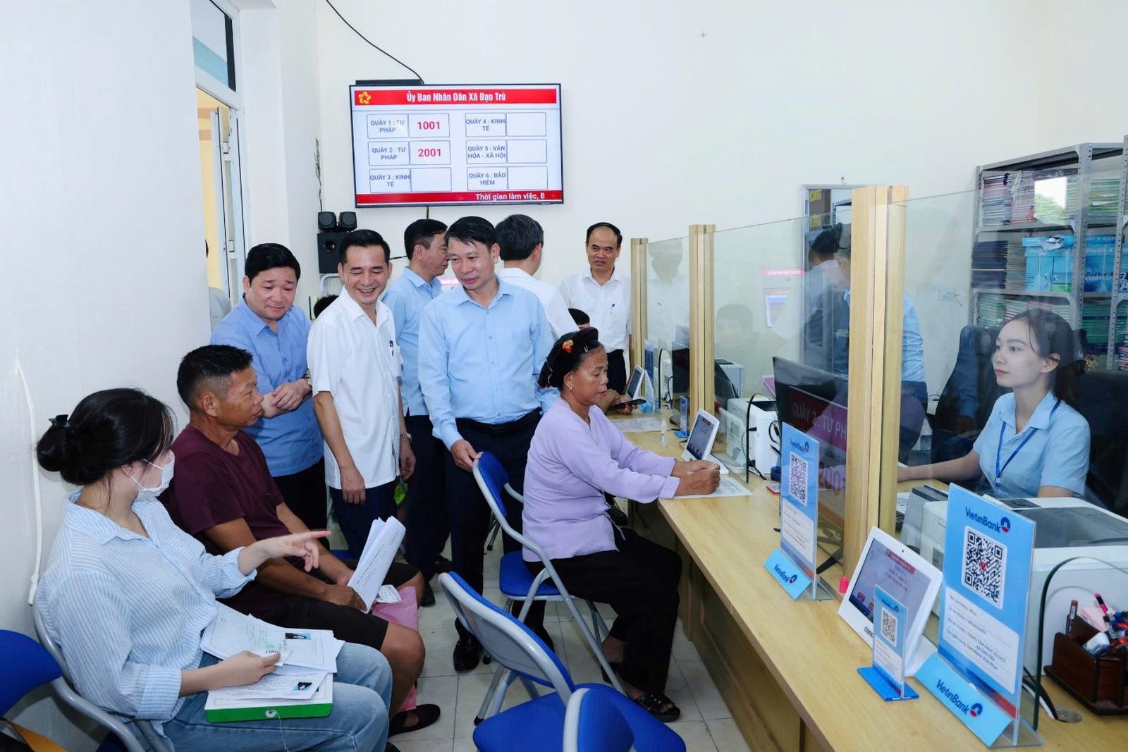 Lãnh đạo UBND tỉnh Phú Thọ kiểm tra hoạt động tại Trung tâm Phục vụ hành chính công 1 xã trên địa bàn. Ảnh: phutho.gov.vn