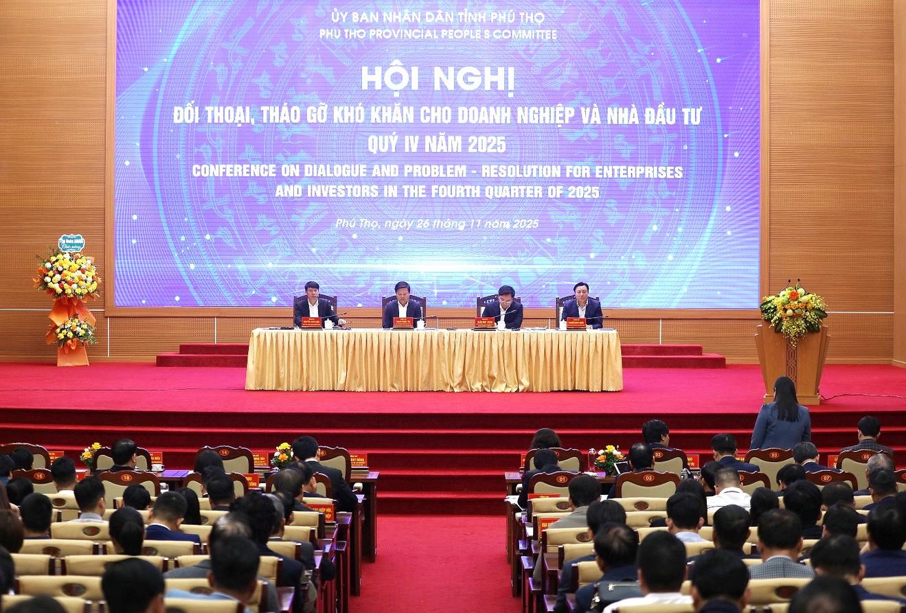 Hội nghị đối thoại, tháo gỡ khó khăn cho doanh nghiệp và nhà đầu tư quý IV năm 2025 của UBND tỉnh Phú Thọ. Ảnh: Đức Hiền