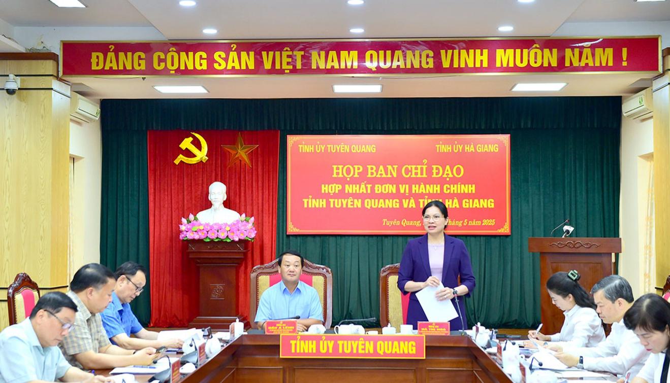 Để đảm bảo Đề án hợp nhất đơn vị hành chính 2 tỉnh theo đúng kế hoạch, Bí thư Tỉnh ủy Tuyên Quang Hà Thị Nga đề nghị Tổ giúp việc tiếp tục bám sát nhiệm vụ được phân công, nhất là các văn bản chỉ đạo của Trung ương và địa phương để triển khai các nội dung công việc, đảm bảo tiến độ.