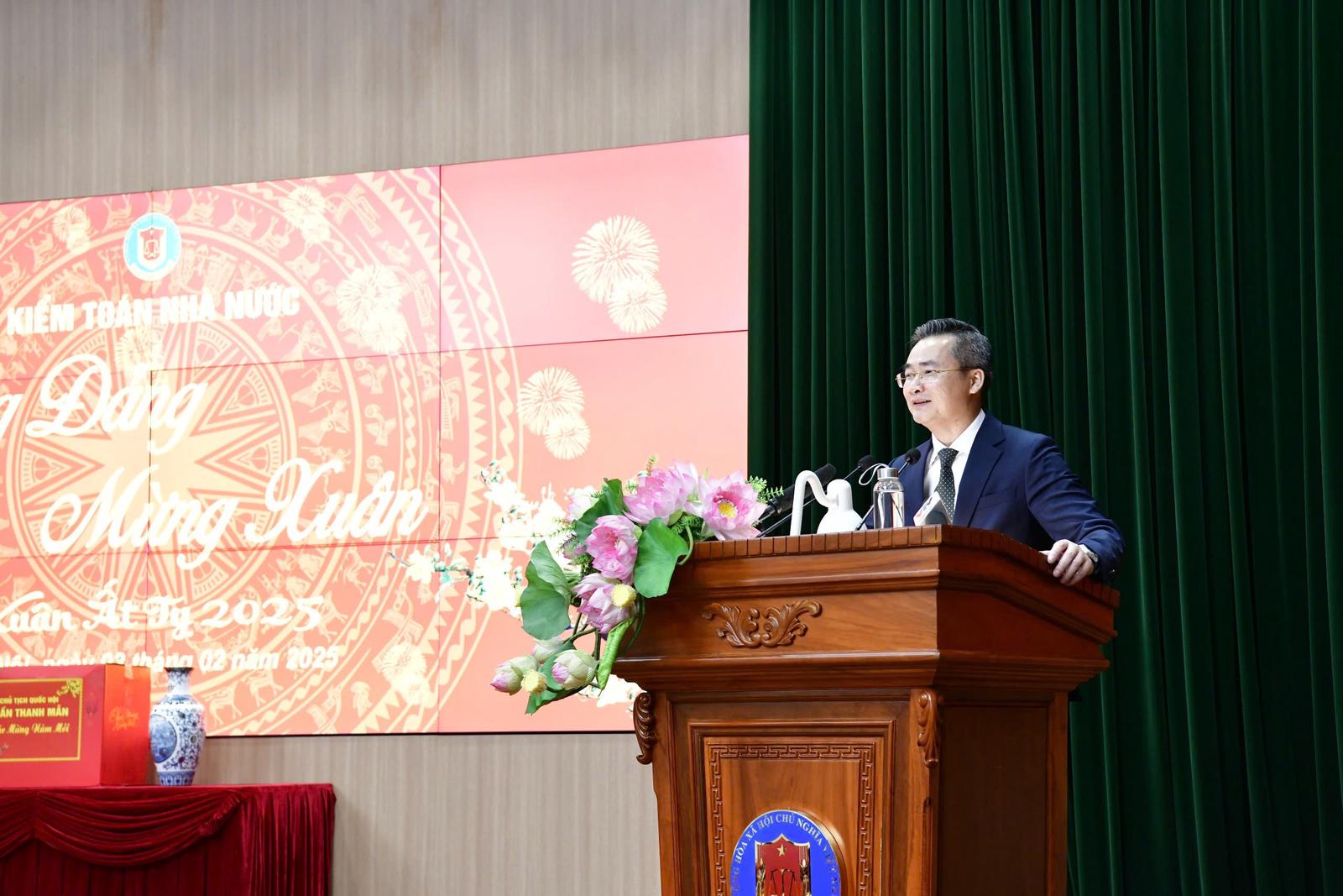 Thay mặt Ủy ban Thường vụ Quốc hội và các đại biểu, Chủ tịch Quốc hội Trần Thanh Mẫn chúc toàn thể lãnh đạo, cán bộ, công chức, viên chức, người lao động KTNN và gia đình nhiều sức khỏe, hạnh phúc và có nhiều niềm vui mới. Chúc KTNN có một năm mới, thắng lợi mới, xứng đáng là công cụ hữu hiệu của Đảng, Nhà nước.