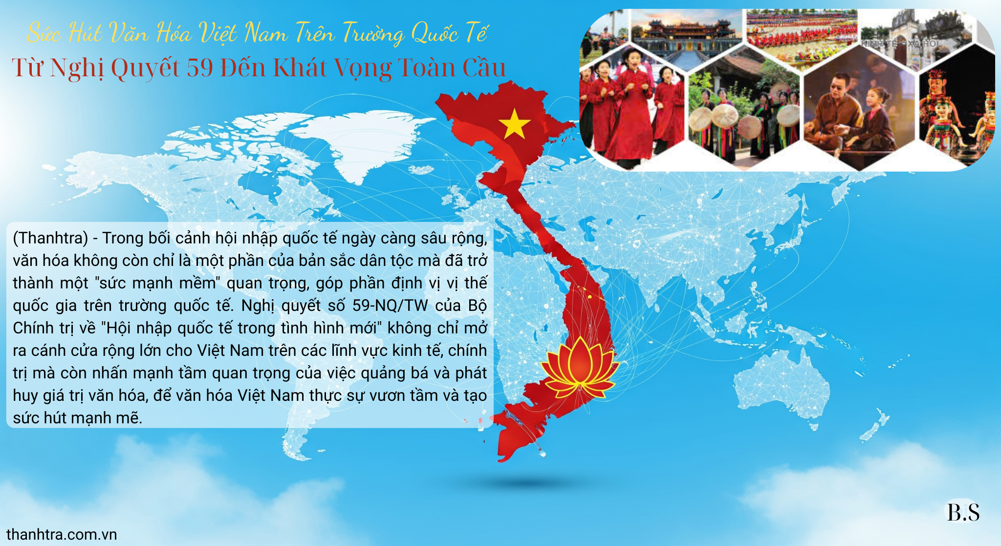Nghị quyết 59-NQ/TW đã định hướng chiến lược hội nhập toàn diện của Việt Nam, không chỉ dừng lại ở kinh tế mà mở rộng sang cả văn hóa, xã hội, an ninh, quốc phòng. Trong đó, việc xây dựng và phát huy "sức mạnh mềm" thông qua văn hóa được xác định là một trụ cột quan trọng. Sức hút văn hóa không chỉ giúp nâng cao hình ảnh quốc gia, mà còn tạo cầu nối vững chắc giữa Việt Nam với bạn bè quốc tế, thúc đẩy sự hiểu biết lẫn nhau và củng cố nền tảng hợp tác bền vững.