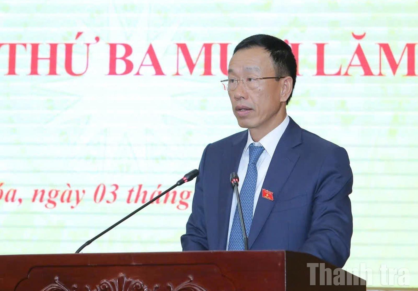 (Thanh tra) - Sáng 3/11, HĐND tỉnh Thanh Hóa khóa XVIII tổ chức Kỳ họp thứ 35 để thảo luận, xem xét và quyết nghị nhiều nội dung quan trọng về tổ chức bộ máy, kinh tế - xã hội, đầu tư công và chính sách hỗ trợ nông nghiệp. Kỳ họp cũng đã tiến hành bầu bổ sung hai Phó Chủ tịch UBND tỉnh cùng một số chức danh lãnh đạo HĐND, UBND tỉnh.