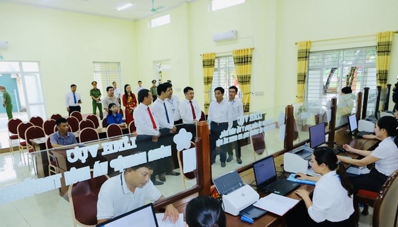 Bí thư Tỉnh ủy Nguyễn Doãn Anh kiểm tra hoạt động Trung tâm Phục vụ hành chính công xã Hoằng Lộc. Ảnh: Minh Hiếu