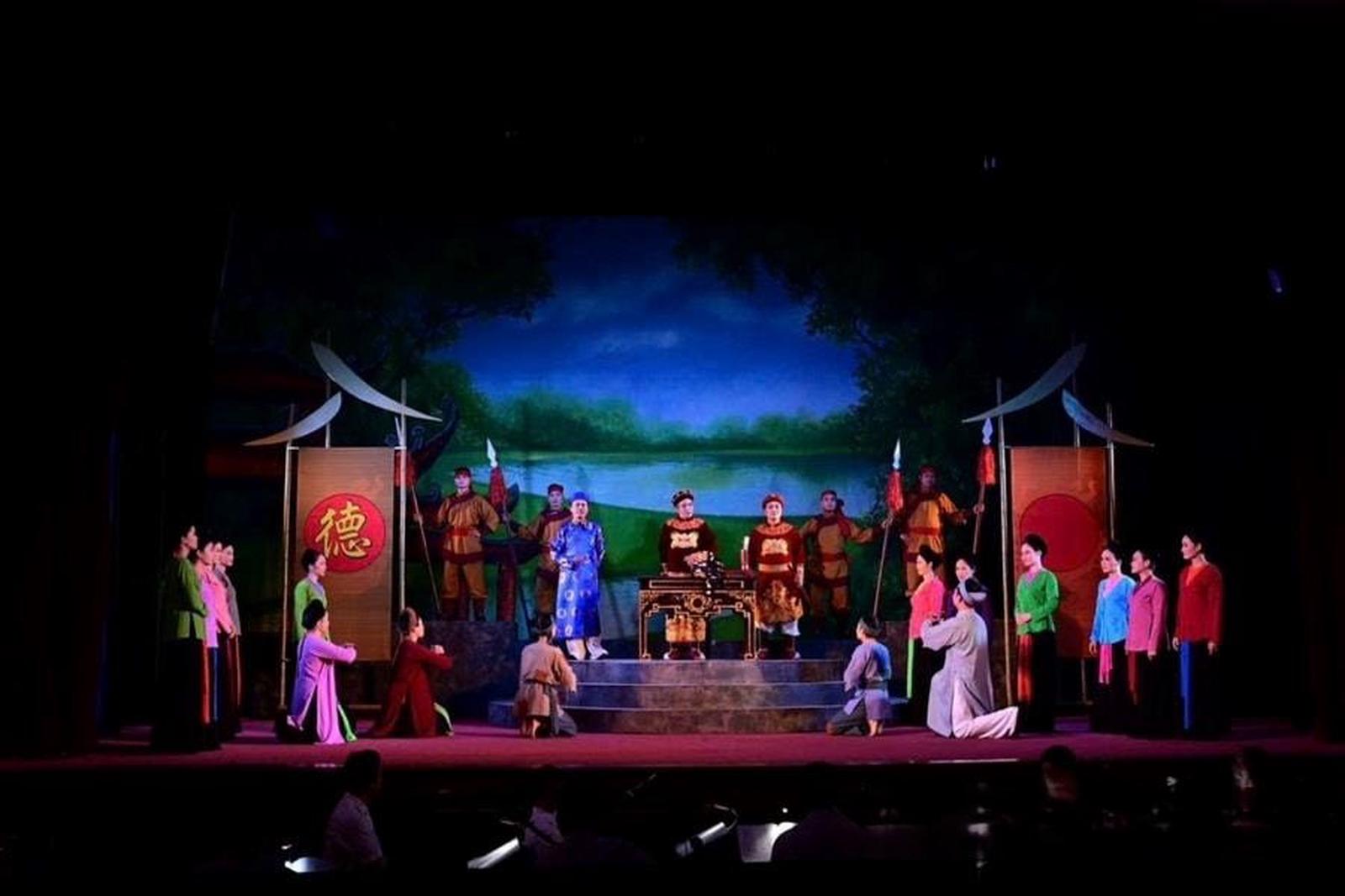 Các nghệ sĩ của Hải Phòng đang khẩn trương tập luyện, chuẩn bị cho những đêm diễn đặc sắc tại triển lãm. Ảnh: HH
