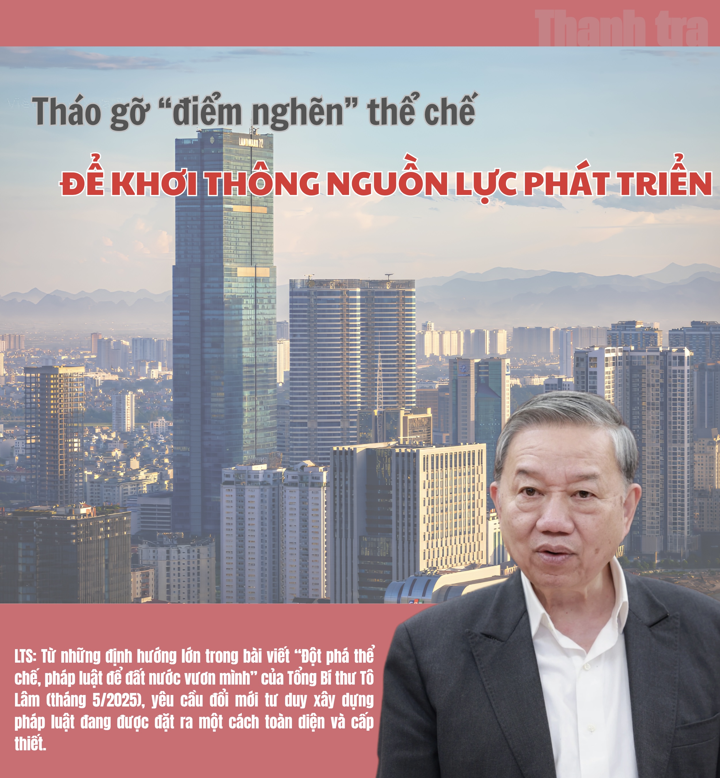 Trước đó, Nghị quyết 66-NQ/TW đã xác định rõ mục tiêu xây dựng hệ sinh thái pháp luật thân thiện, lấy người dân và doanh nghiệp làm trung tâm. Tinh thần này tiếp tục được nhấn mạnh và làm sâu sắc hơn trong bài viết của Tổng Bí thư.