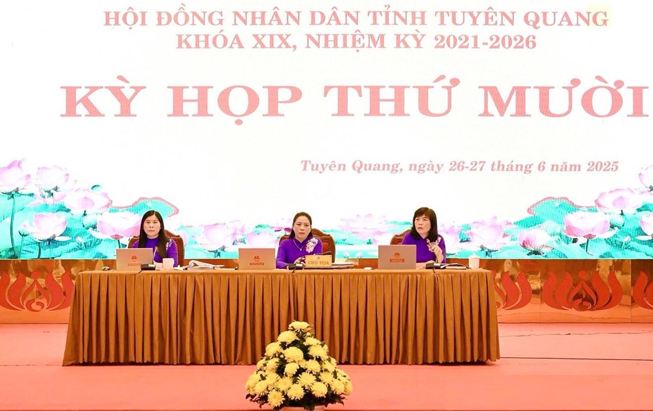 Phát biểu khai mạc kỳ họp, Phó Bí thư Thường trực Tỉnh ủy, Chủ tịch HĐND tỉnh Tuyên Quang Lê Thị Kim Dung nhấn mạnh: Kỳ họp thứ 10 được tổ chức trong thời điểm hết sức đặc biệt, khi Quốc hội khóa XV đang thảo luận, quyết nghị nhiều nội dung lớn, trong đó có các nghị quyết quan trọng liên quan đến việc sắp xếp đơn vị hành chính cấp tỉnh, cấp xã. Đây là cơ sở pháp lý đầy đủ, đồng bộ để các đơn vị hành chính trong cả nước, trong đó có Tuyên Quang, thống nhất hoạt động theo mô hình chính quyền địa phương hai cấp, chính thức từ ngày 1/7/2025. Đây là dấu mốc có ý nghĩa lịch sử, thể hiện tư duy đổi mới, cải cách mạnh mẽ trong quản trị quốc gia, hướng tới hiện đại hóa, số hóa và phát triển bền vững.