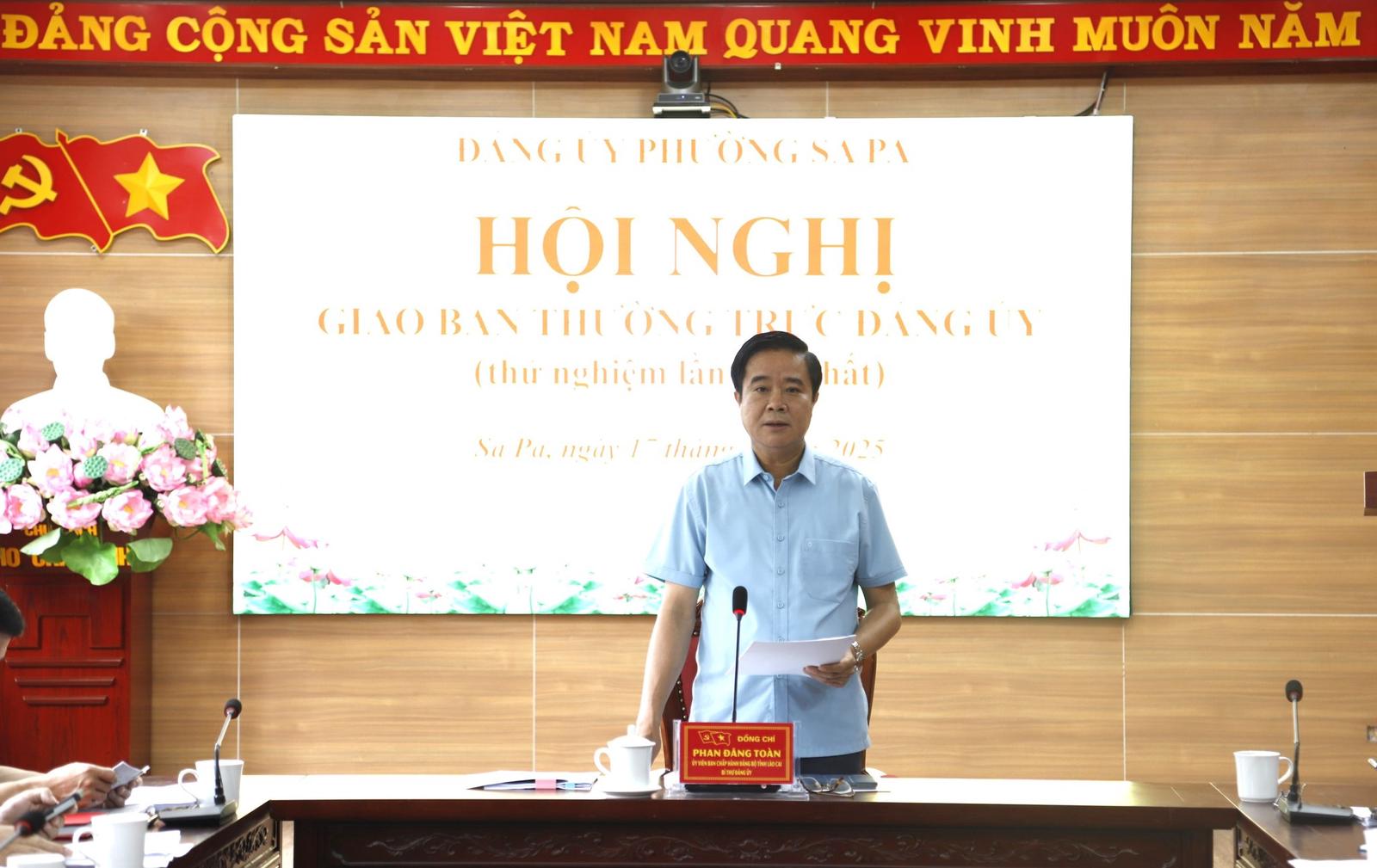 Phát biểu kết luận hội nghị, Bí thư Thị ủy thị xã Sa Pa Phan Đăng Toàn, Tổ trưởng Tổ công tác số 1 ghi nhận và đánh giá cao tinh thần trách nhiệm của các thành viên trong công tác chuẩn bị. Ông Phan Đăng Toàn đề nghị tiếp tục rà soát kỹ lưỡng điều kiện cơ sở vật chất phục vụ hoạt động của phường, đặc biệt là chuẩn bị tốt khu vực Trung tâm Dịch vụ hành chính công, đảm bảo đồng bộ, hiện đại, tạo điều kiện thuận lợi nhất cho người dân và doanh nghiệp khi giao dịch hành chính.